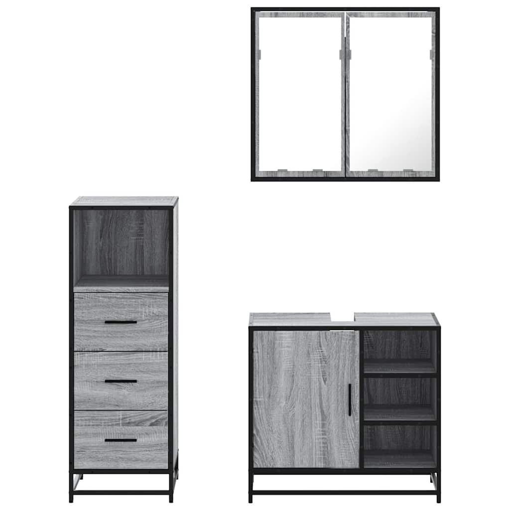 3 részes szürke sonoma színű szerelt fa fürdőszobai bútorszett