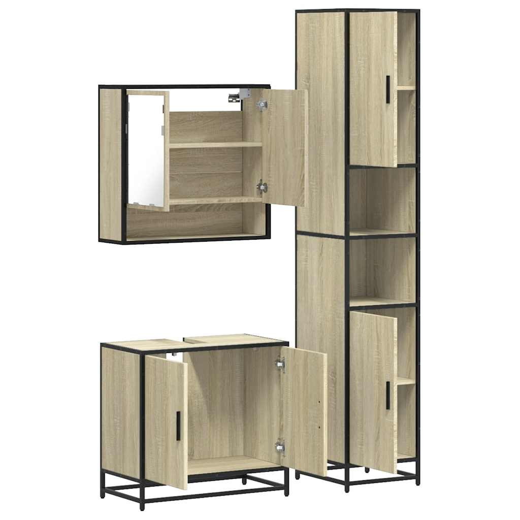 3 részes sonoma tölgyszínű szerelt fa fürdőszobai bútorszett