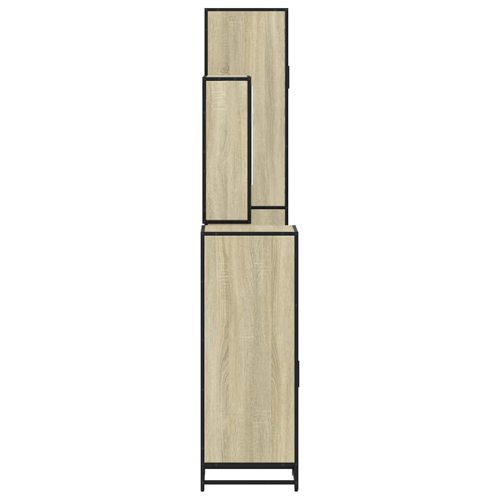 4 részes sonoma tölgyszínű szerelt fa fürdőszobai bútorszett