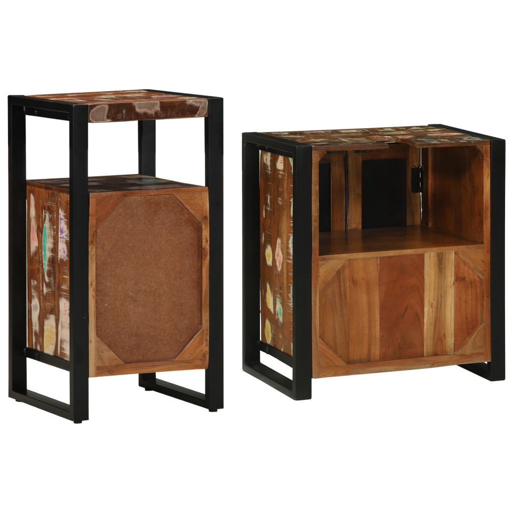 Fürdőszoba bútor szett 2 pcs Barna tömör újrahasznosított fa