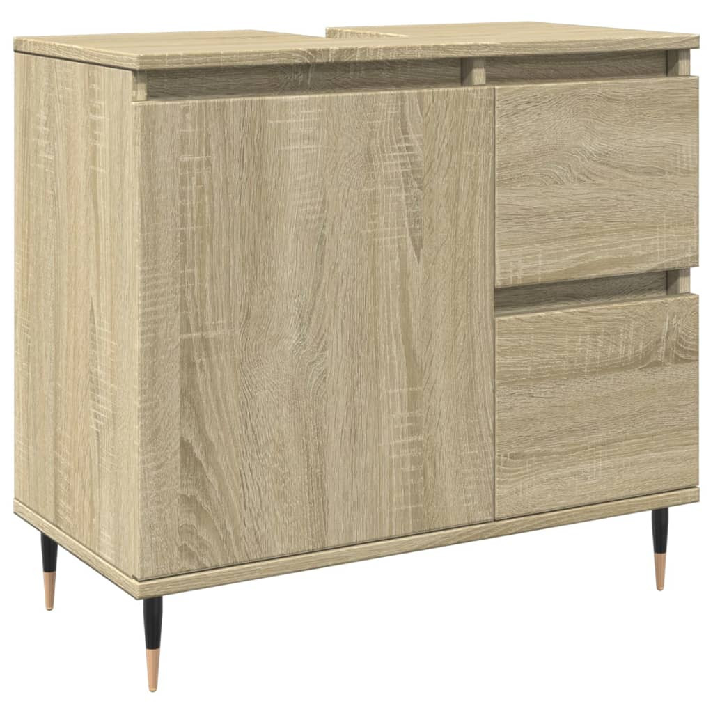 3 részes sonoma tölgyszínű szerelt fa fürdőszobai bútorszett