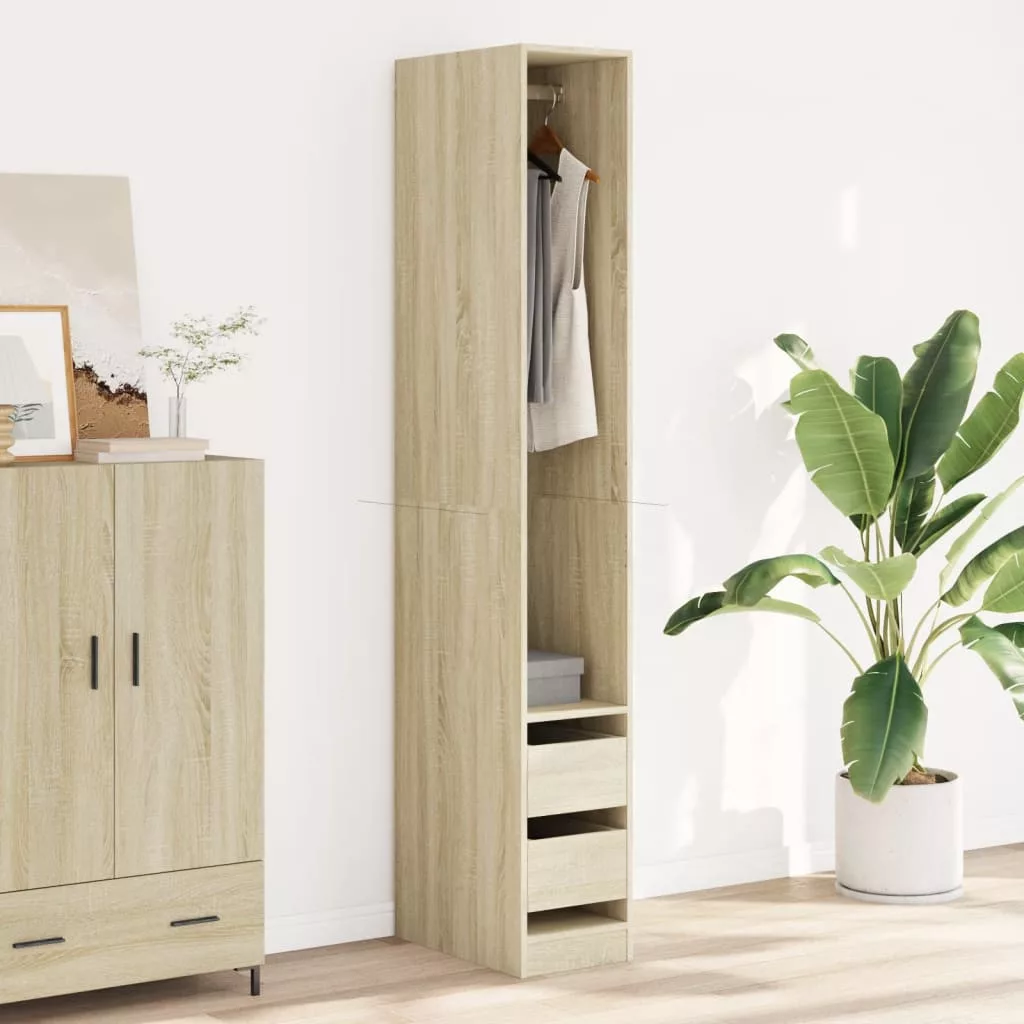 tölgy színű szerelt fa ruhásszekrény 30 x 50 x 200 cm