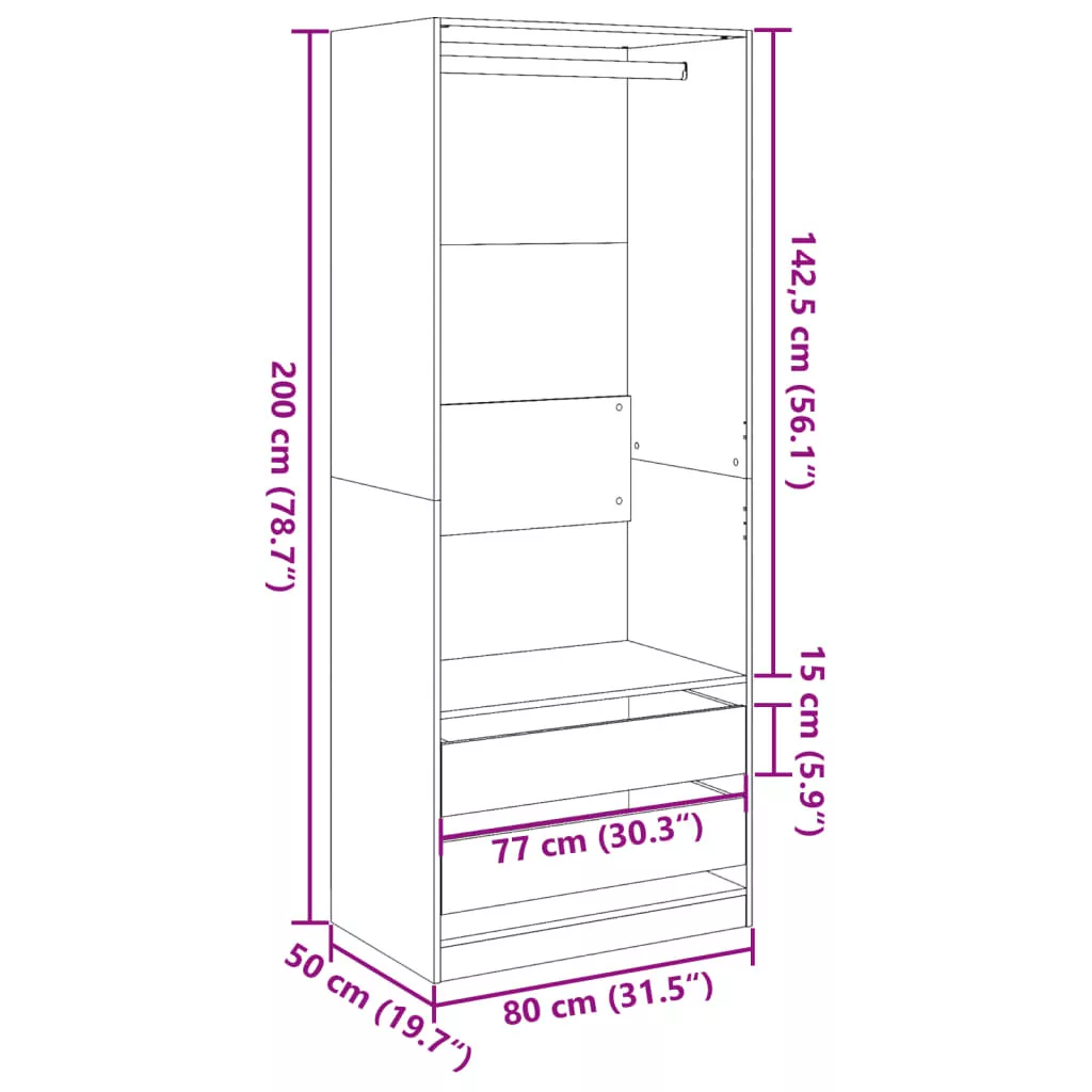 Tegye szabaddá szekrényét, és válogassa ki könnyedén a ruháit ezzel a ruhásszekrénnyel! Tartós és masszív anyag: A szerelt fa kivételes minőségű, sima felületű, szilárd, stabil, és ellenáll a nedvességnek.Bőséges tárolóhely: Ez az előszobaszekrény 1 rekesszel és 2 fiókkal rendelkezik, így bőséges tárolóhelyet biztosít ruháinak, sapkáinak, kesztyűinek, vagy egyéb alapvető dolgainak.Elegáns és kompakt kialakítás: A letisztult vonalaknak és a minimalista stílusnak köszönhetően a ruhásszekrény tökéletesen illik a szobába, kompakt méretének köszönhetően pedig kis helyen is tökéletesen elfér. Figyelem:A felborulás elkerülése érdekében ezt a terméket a mellékelt fali rögzítőeszközzel kell használni.