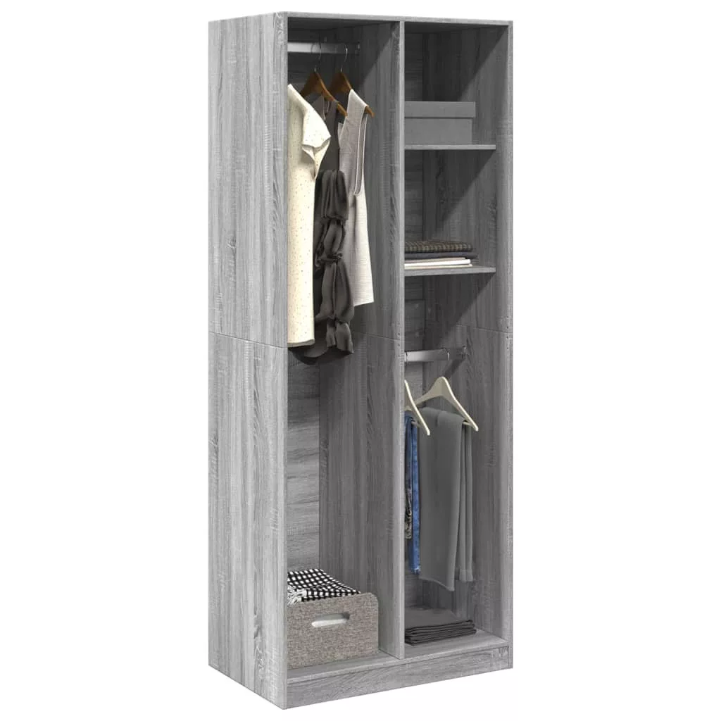 szürke sonoma színű szerelt fa ruhásszekrény 80 x 50 x 200 cm