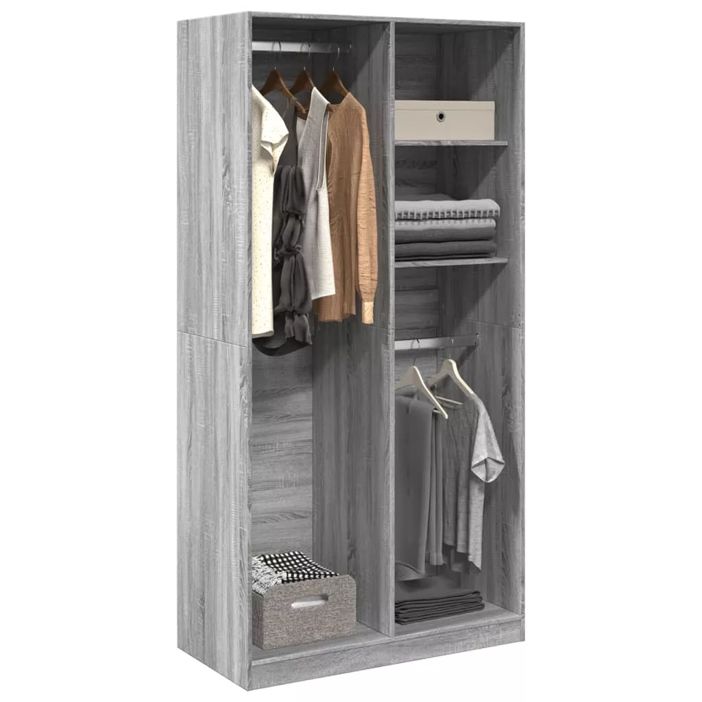 szürke sonoma színű szerelt fa ruhásszekrény 100 x 50 x 200 cm