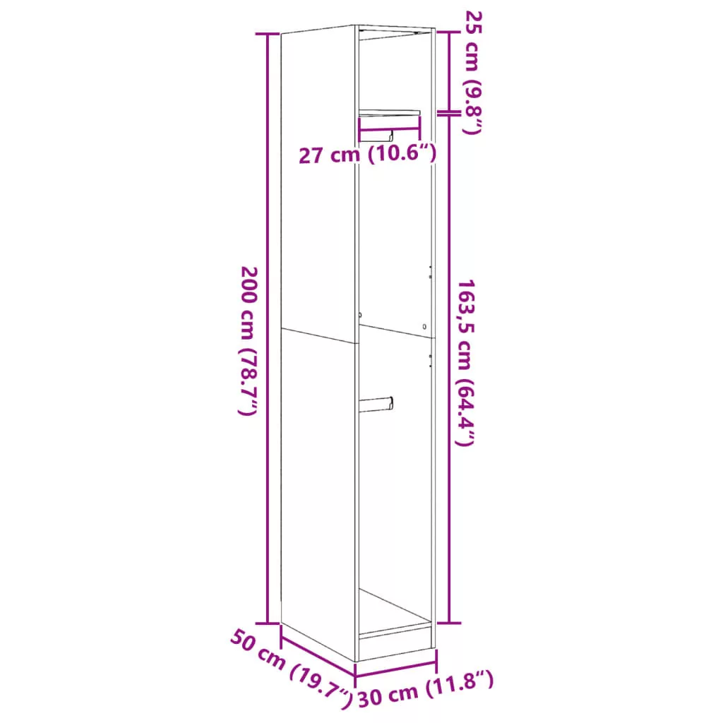 tölgy színű szerelt fa ruhásszekrény 30 x 50 x 200 cm