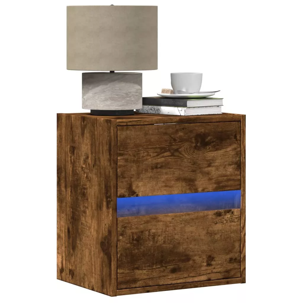 füstös sonoma színű fali éjjeliszekrény LED-világítással