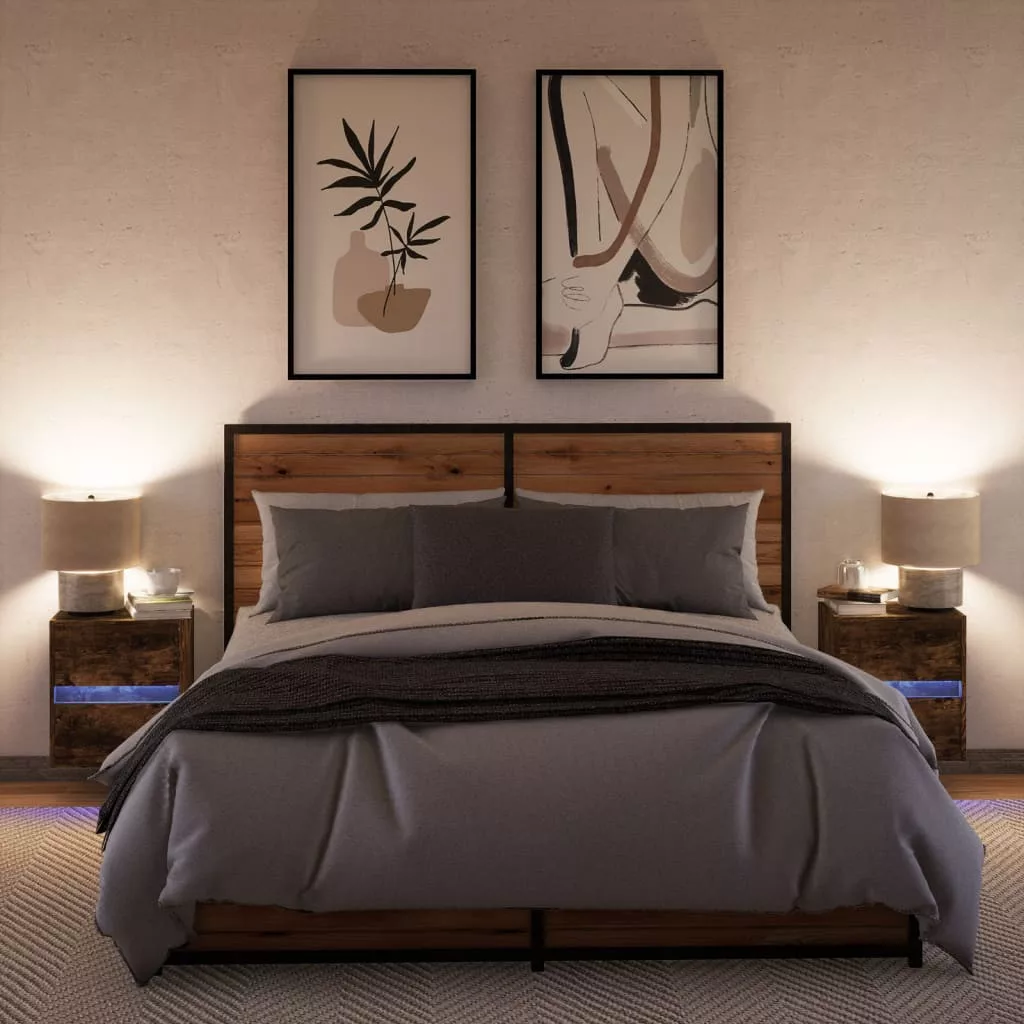 2 db sonoma tölgy színű fali éjjeliszekrény LED-világítással