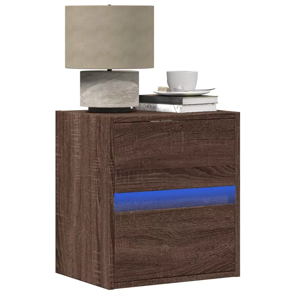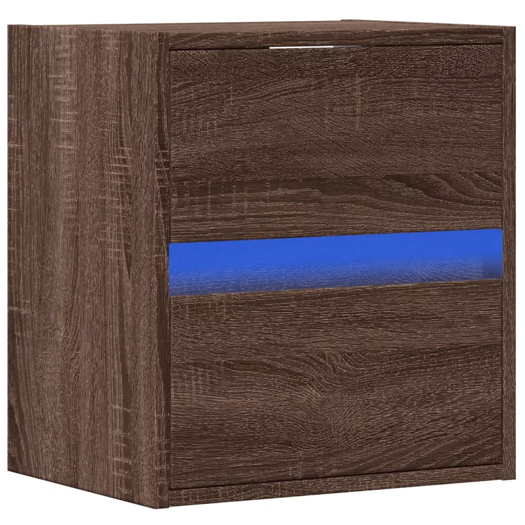 barna tölgy színű fali éjjeliszekrény LED-világítással