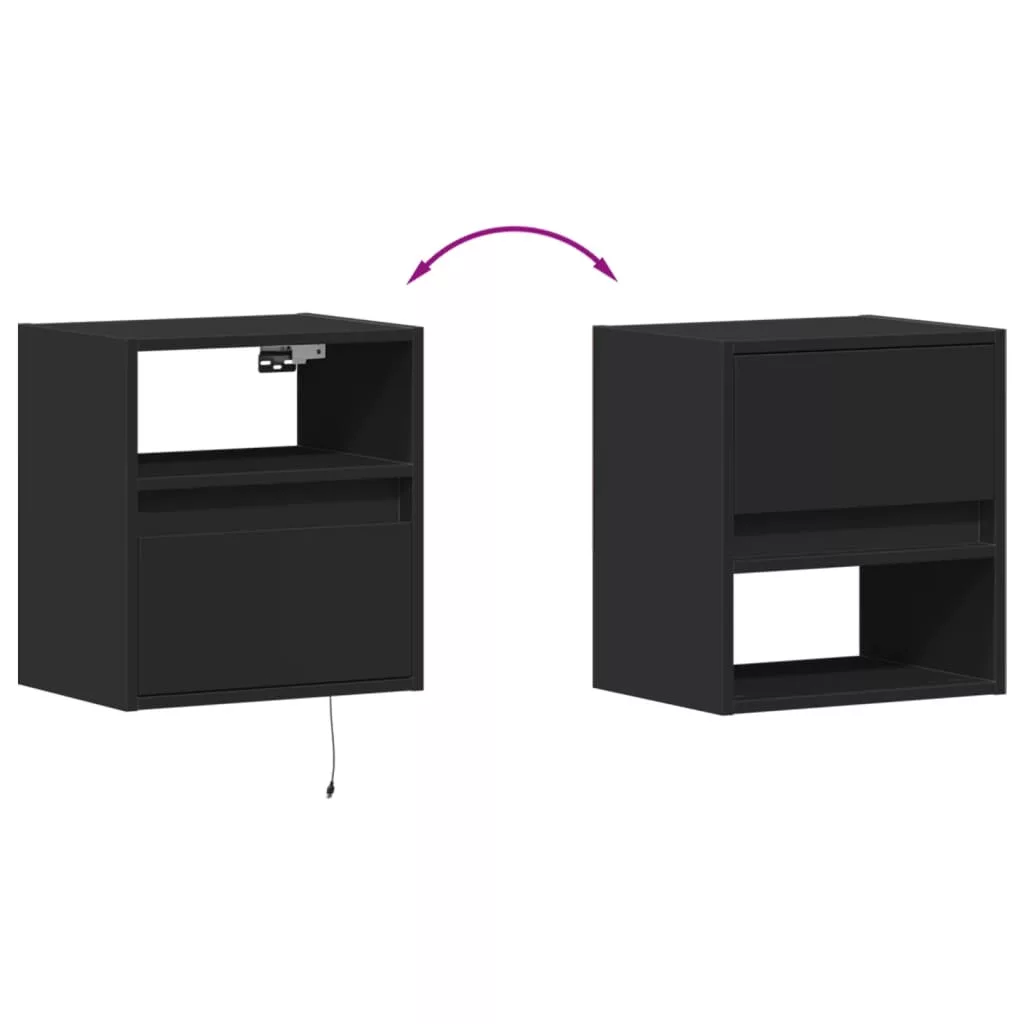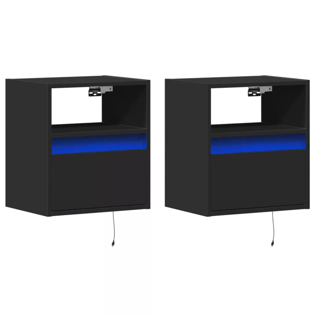 2 db fekete falra szerelhető éjjeliszekrény LED-világítással