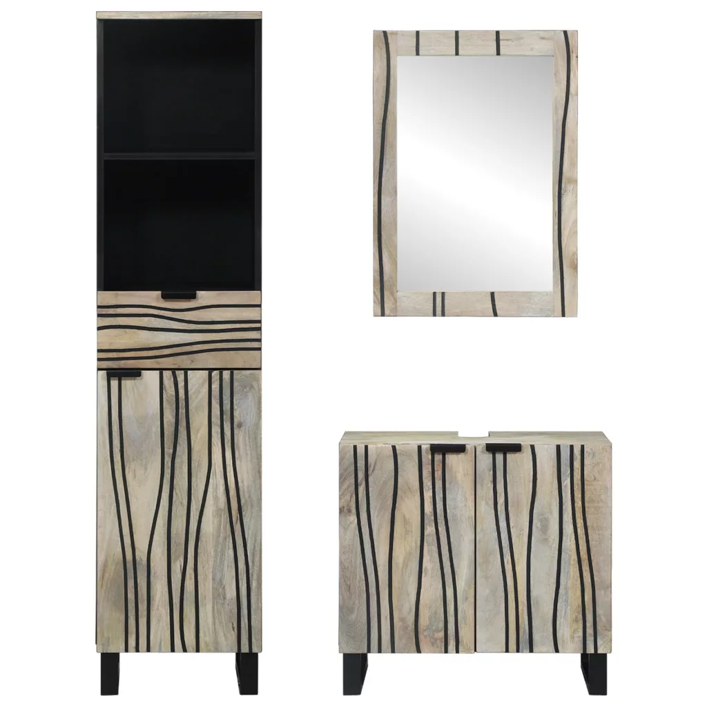 A szállítás tartalma: 1 x Mosdószekrény, 1 x Tükörszekrény, 1 x Fürdőszobai szekrény<\li>