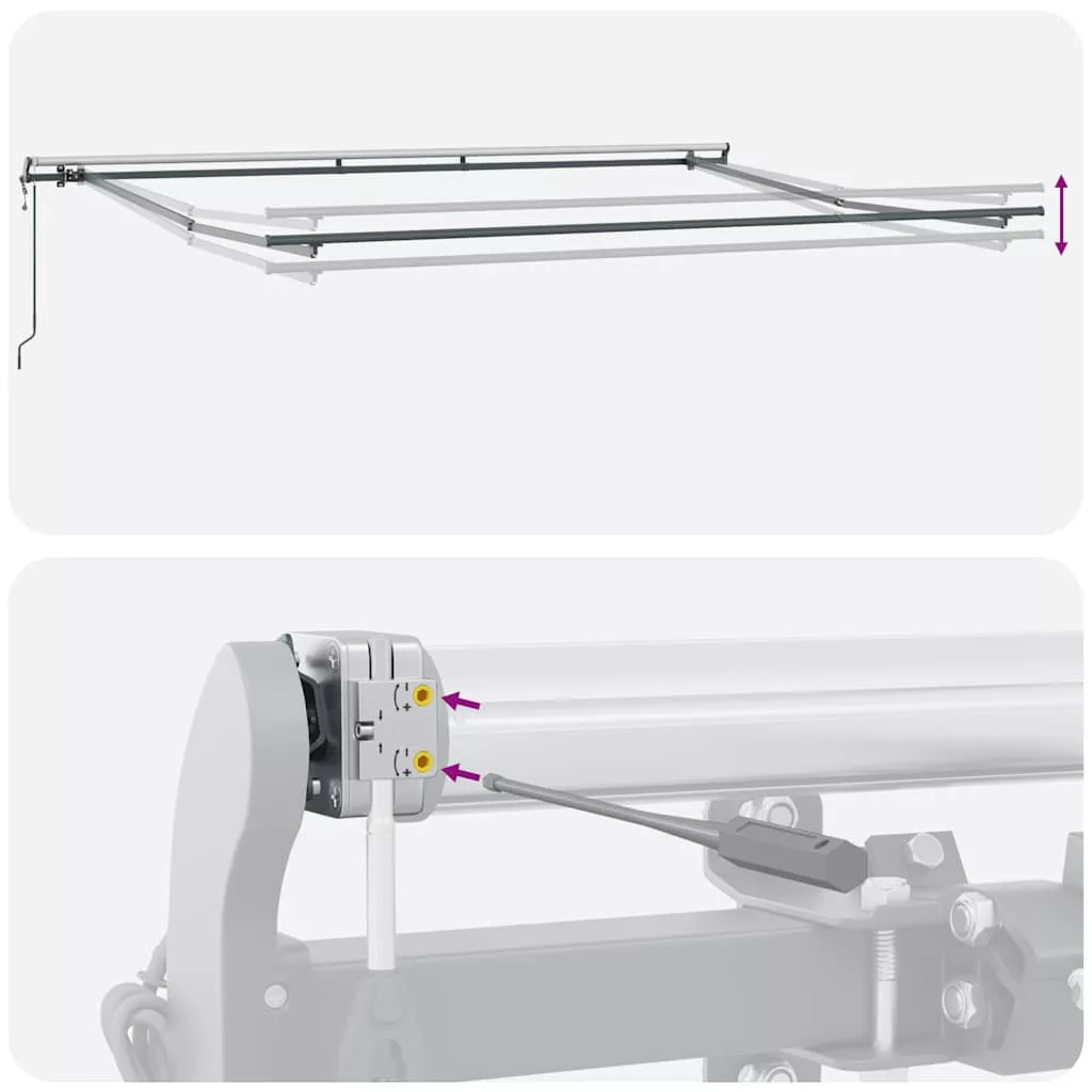 Teremtsen kellemes és hűvös helyet a teraszon, és védje meg magát az UV-sugaraktól ezzel a kihúzható napellenzővel! Tartós anyag: A napellenző váza porszórt alumíniumból készült, amely robusztus és tartós. A PU felületkezeléssel ellátott szövet UV-álló. Óvja családját vagy vendégeit az UV-sugárzástól és a vakító napfénytől.Automata funkció: A napellenzőt a mellékelt távirányítóval könnyedén kinyithatja és visszahúzhatja.Könnyen kezelhető: A szög és a magasság állítható, hogy megfeleljen az Ön különböző igényeinek. A napellenző a hosszú hajtókarral zökkenőmentesen nyitható és visszahúzható.Széleskörű alkalmazás: Ez a kihúzható napellenző egyszerű, stílusos kialakítású, amely jól illeszkedik otthoni vagy kereskedelmi környezetébe. Különféle helyekre alkalmas, például erkélyre, teraszra, udvarra, éttermekbe, kávézókba, üzletekbe stb. A gyermekeket felügyelni kell, hogy ne játszhassanak az eszközzel. Tartsd távol a gyermekeket a szerelési területtől. Figyelem: Olvasd el alaposan az utasításokat használat előtt, és tartsd meg későbbi hivatkozásra.