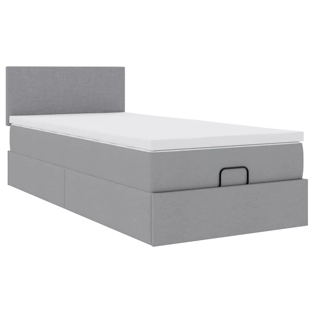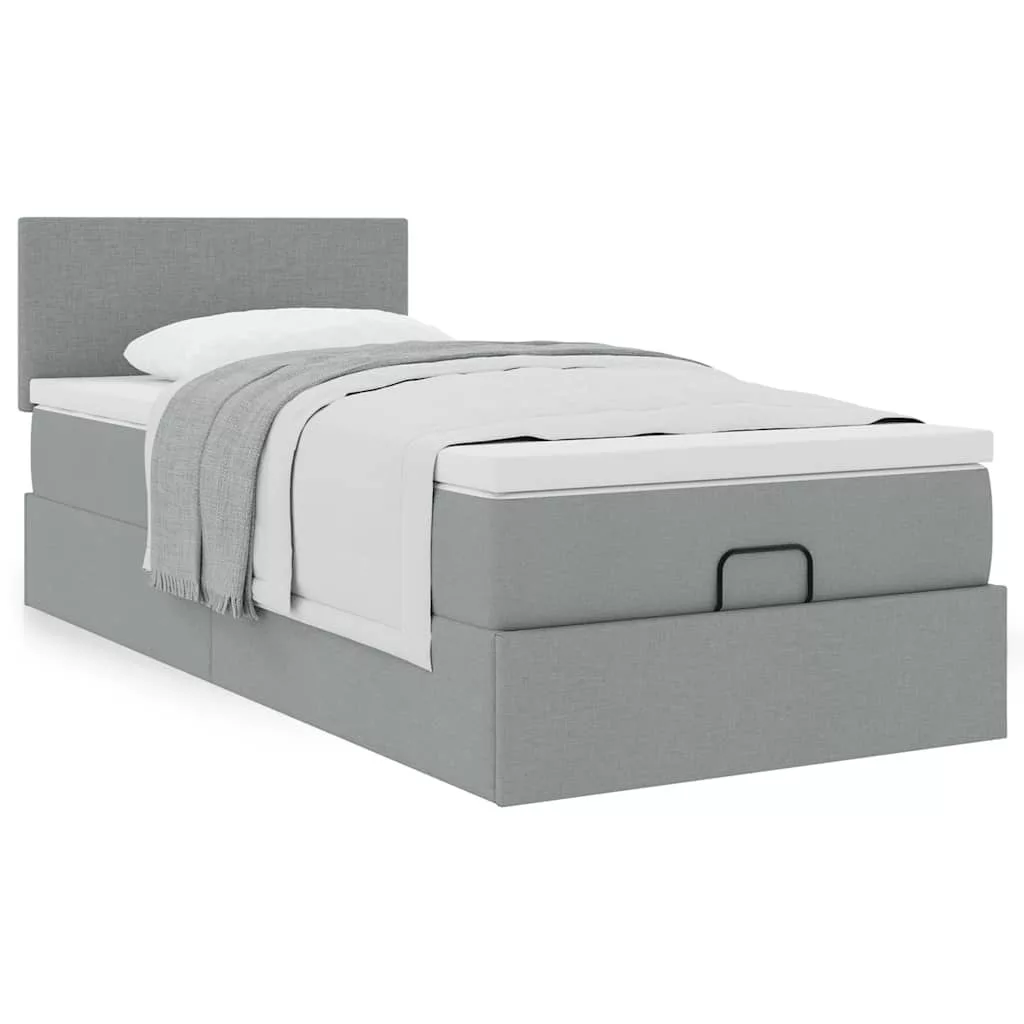 Ottomán ágy matraccal világosszürke 100x200 cm szövet