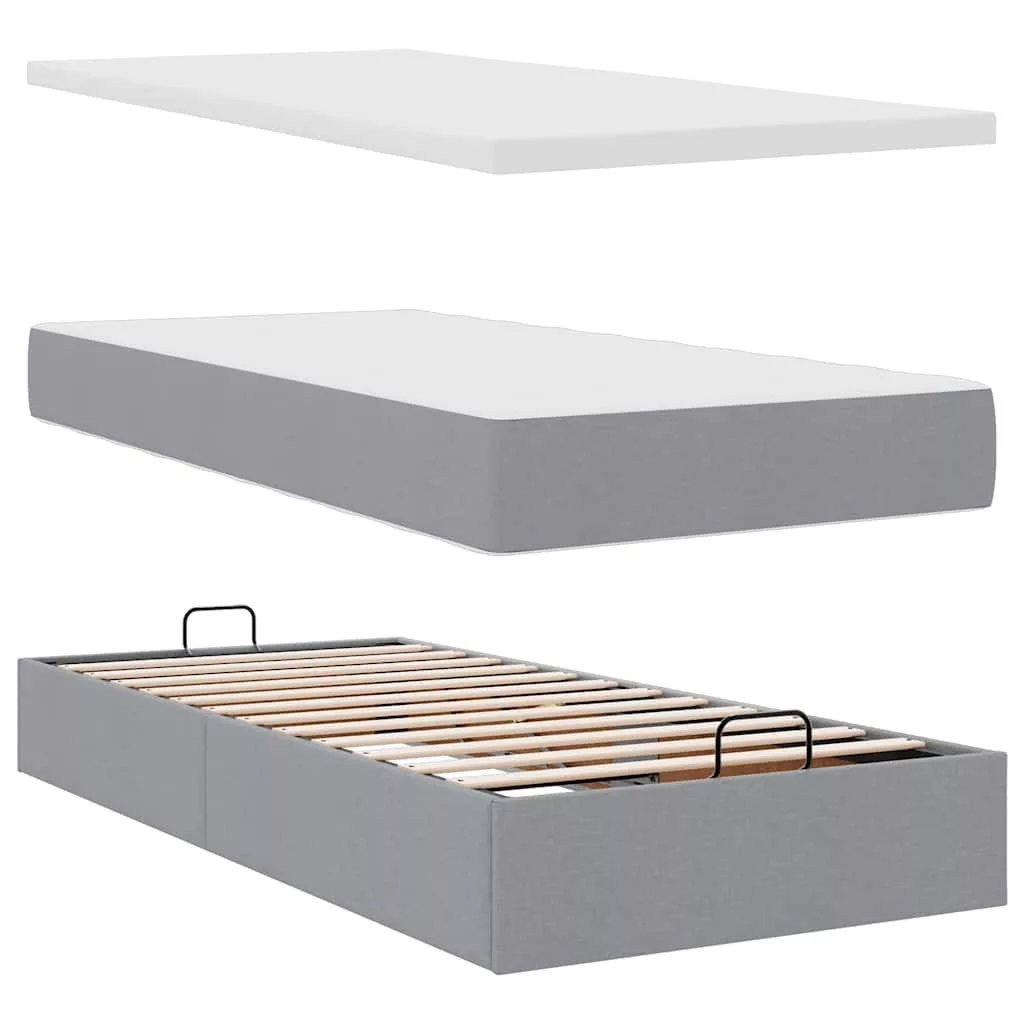 Ottomán ágy matraccal világosszürke 100x200 cm szövet