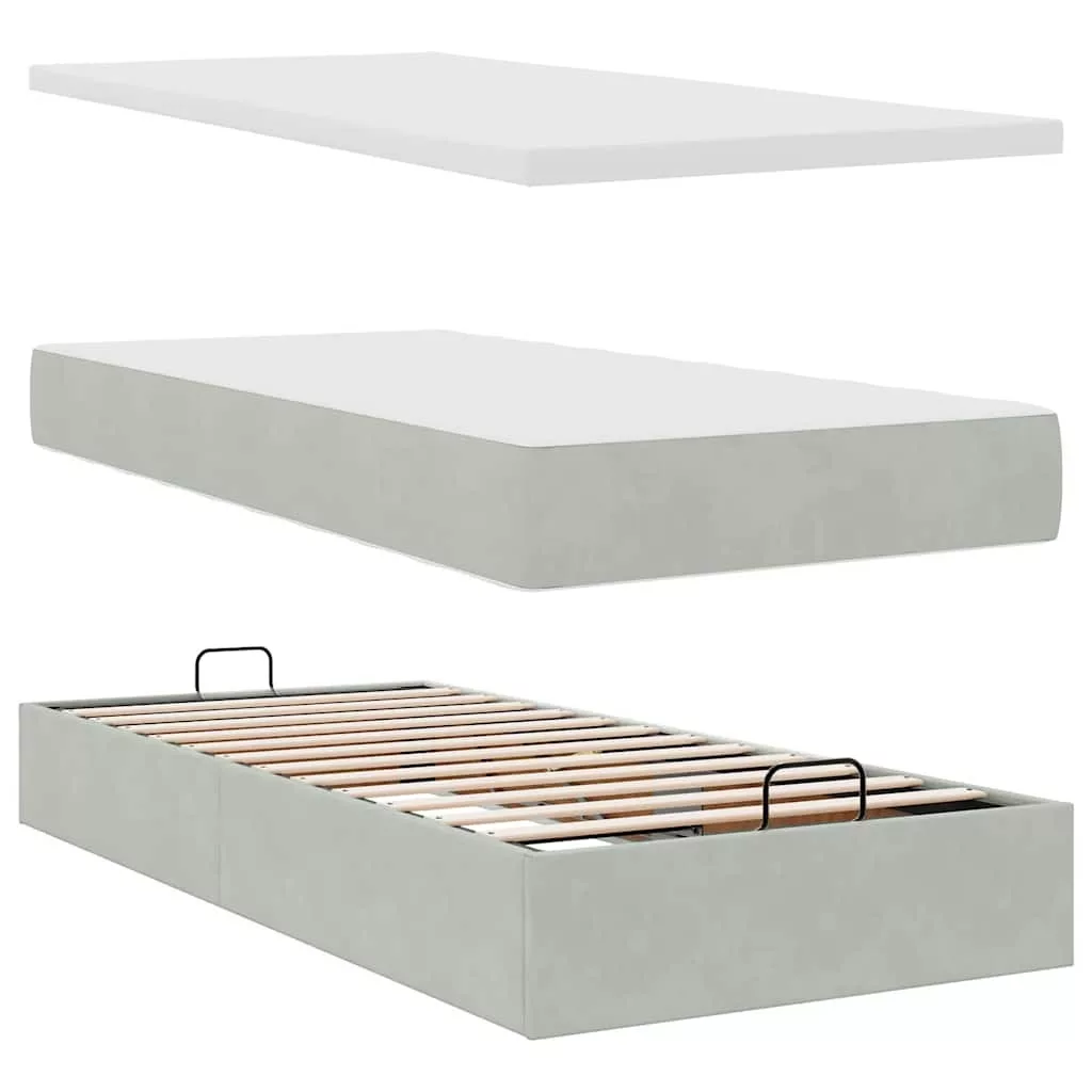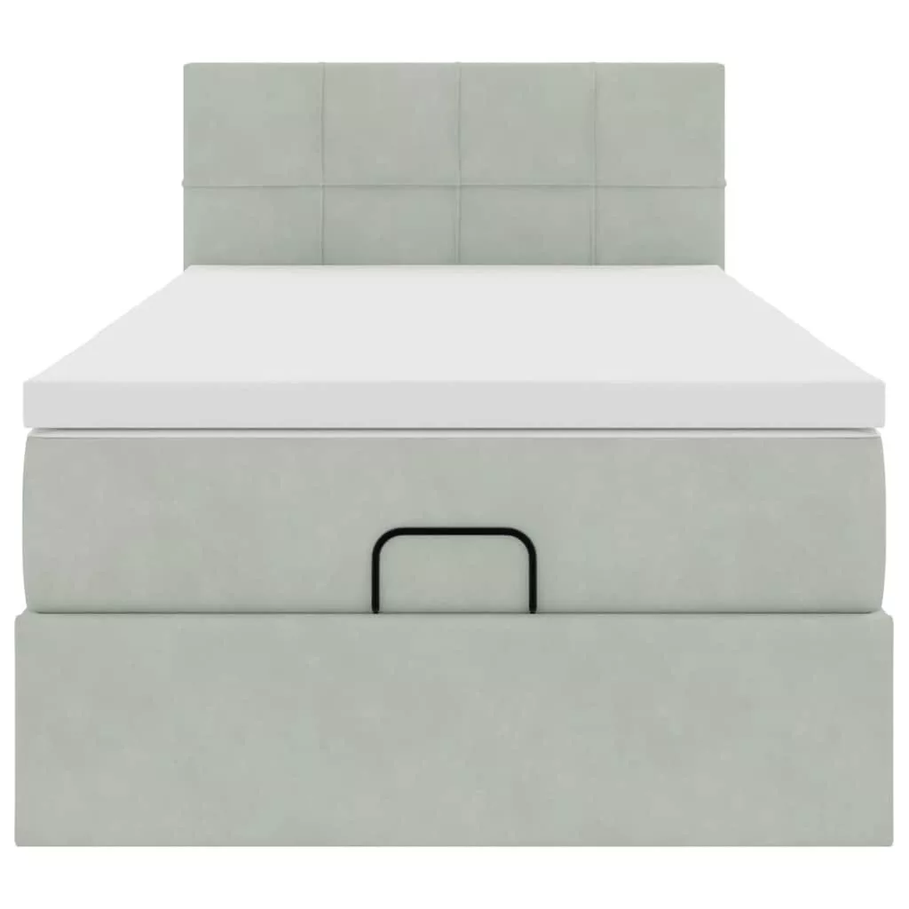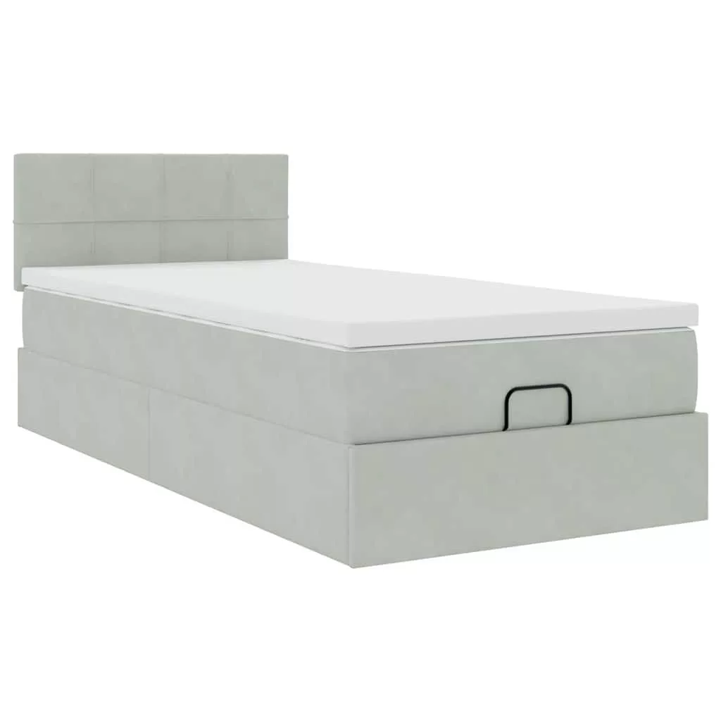 Ottomán ágykeret matraccal Világosszürke 100x200cm bársony