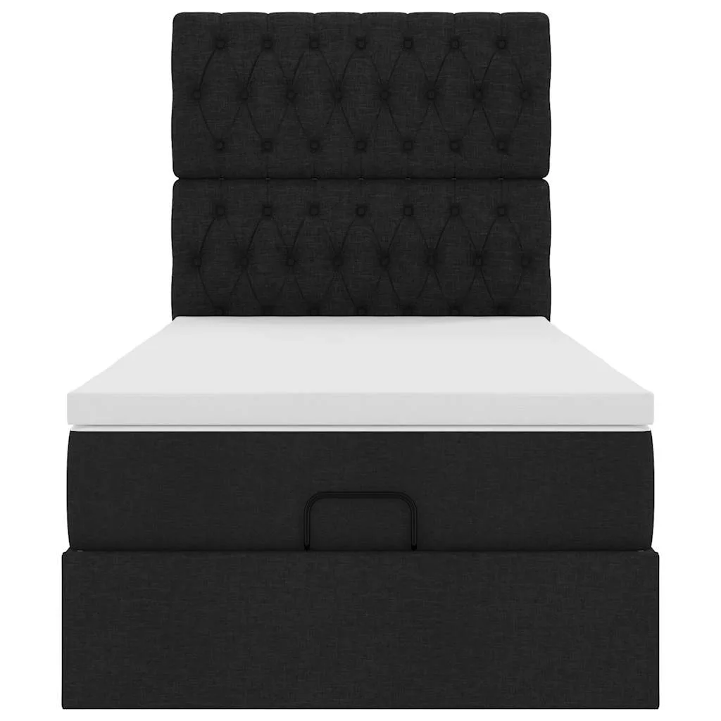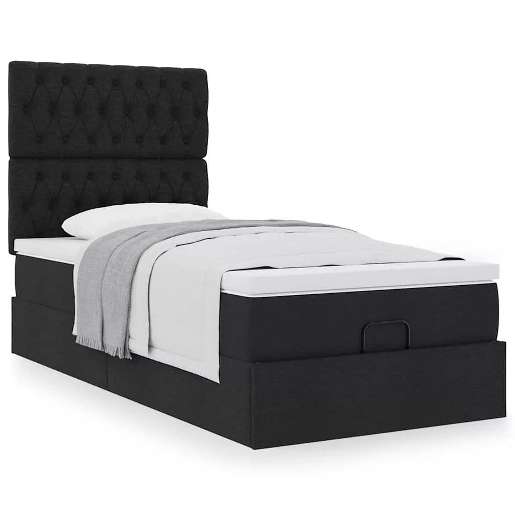 Ottomán ágy matraccal fekete 100x200 cm szövet