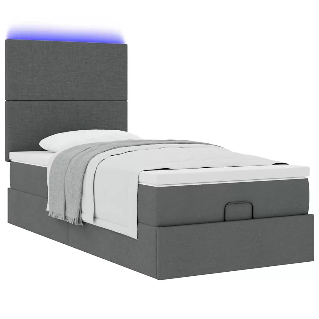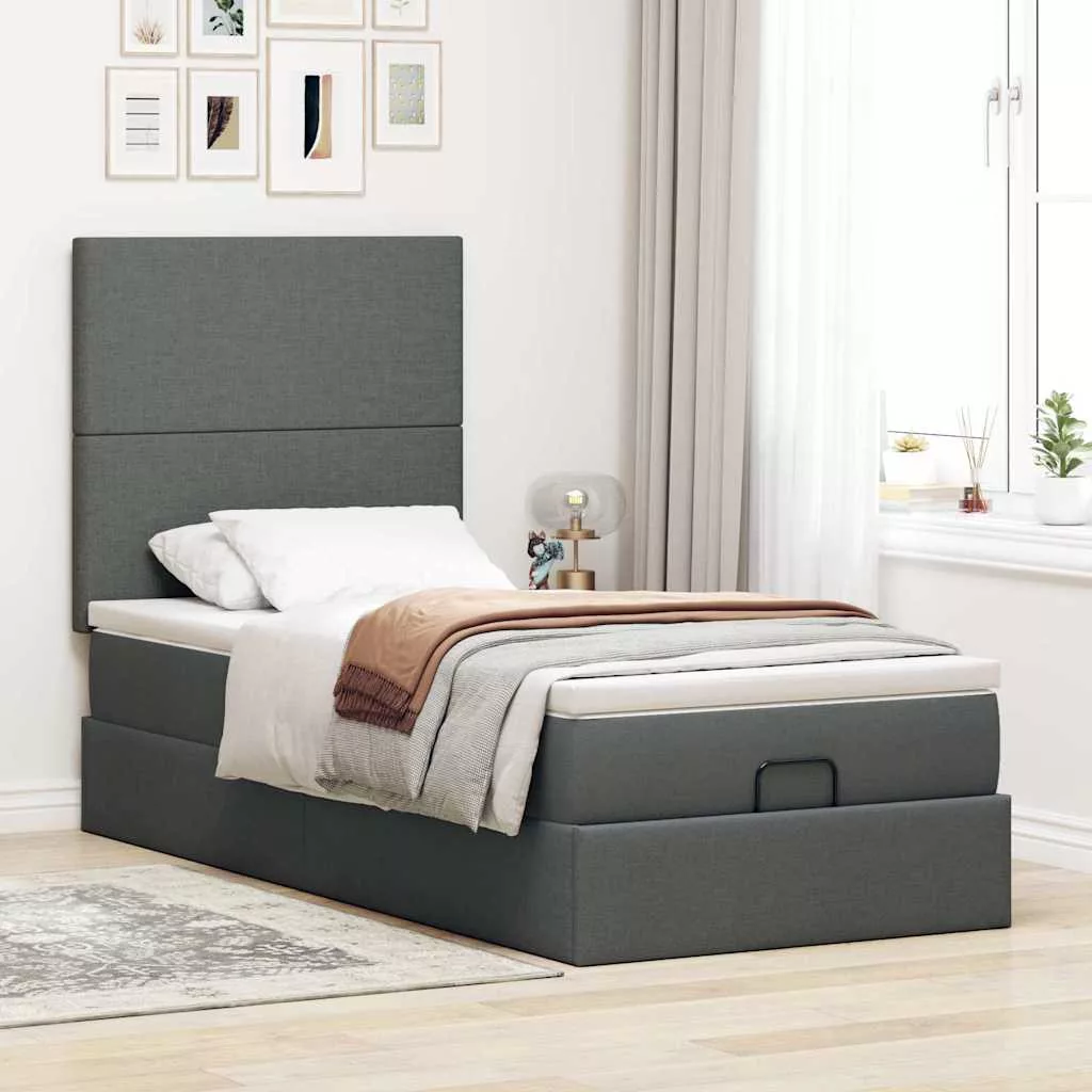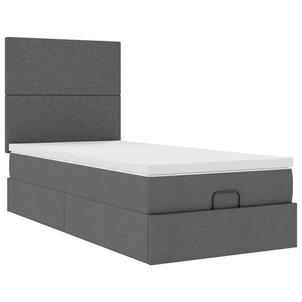 Ottomán ágykeret matraccal sötétszürke 100x200cm szövet