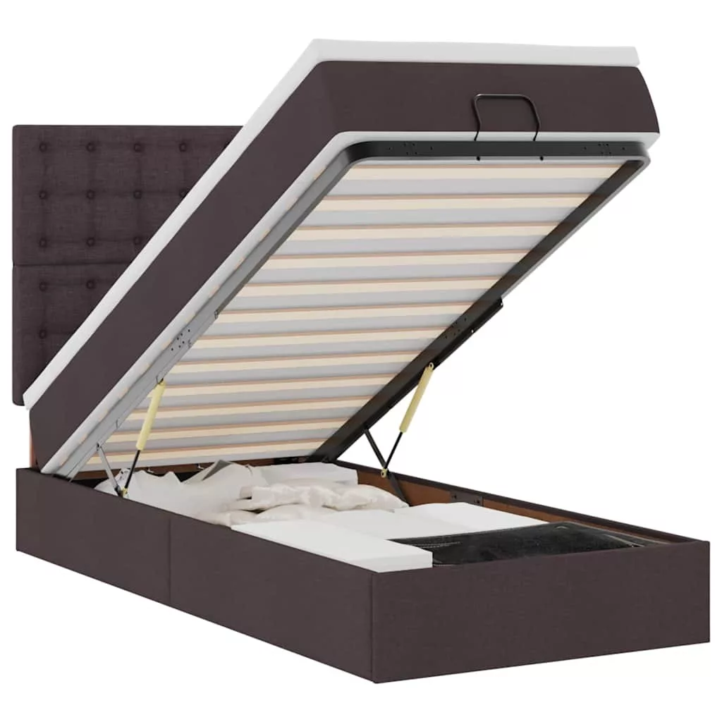 Ottomán ágykeret matraccal sötétbarna 100x200cm szövet