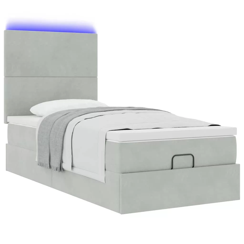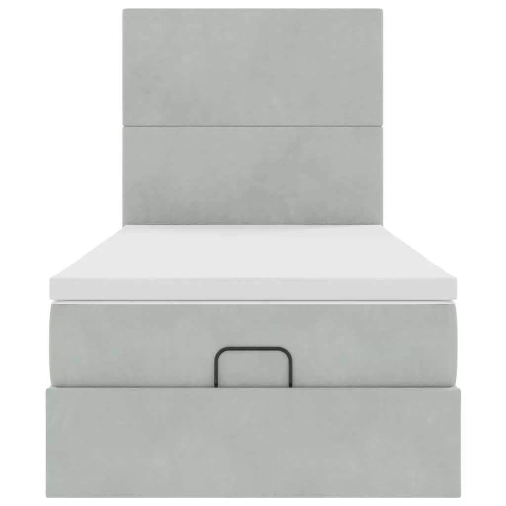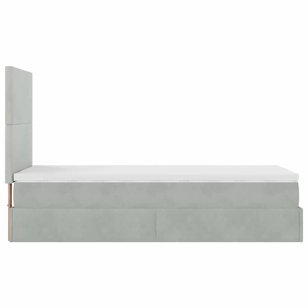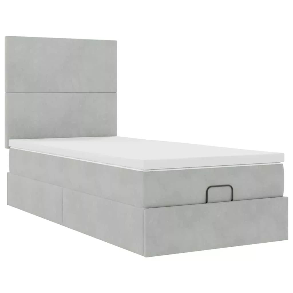 Ottomán ágykeret matracokkal világosszürke 100x200cm bársony