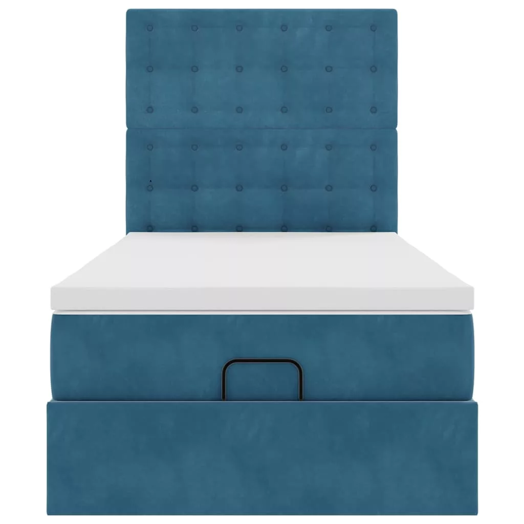 Ottomán ágykeret matracokkal sötétkék 100x200cm bársony