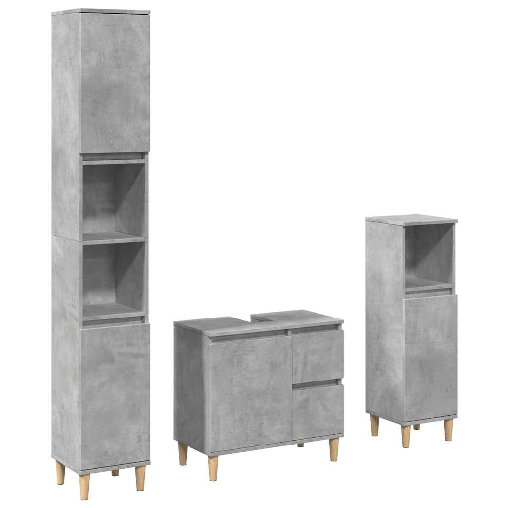3 részes betonszürke szerelt fa fürdőszobai bútorszett