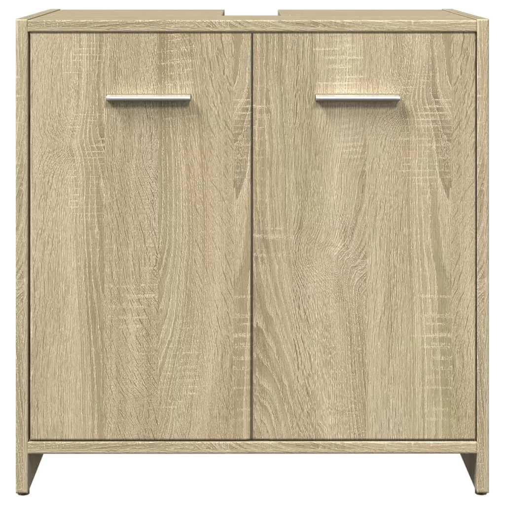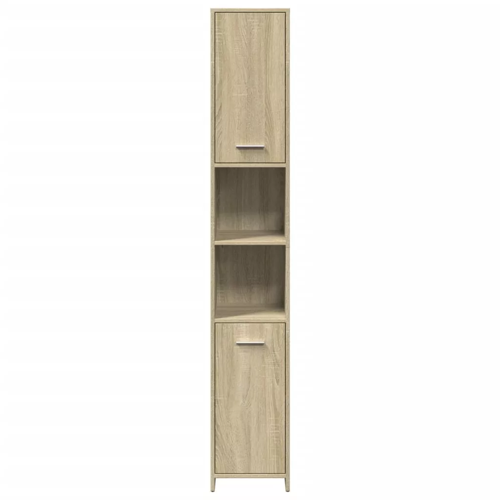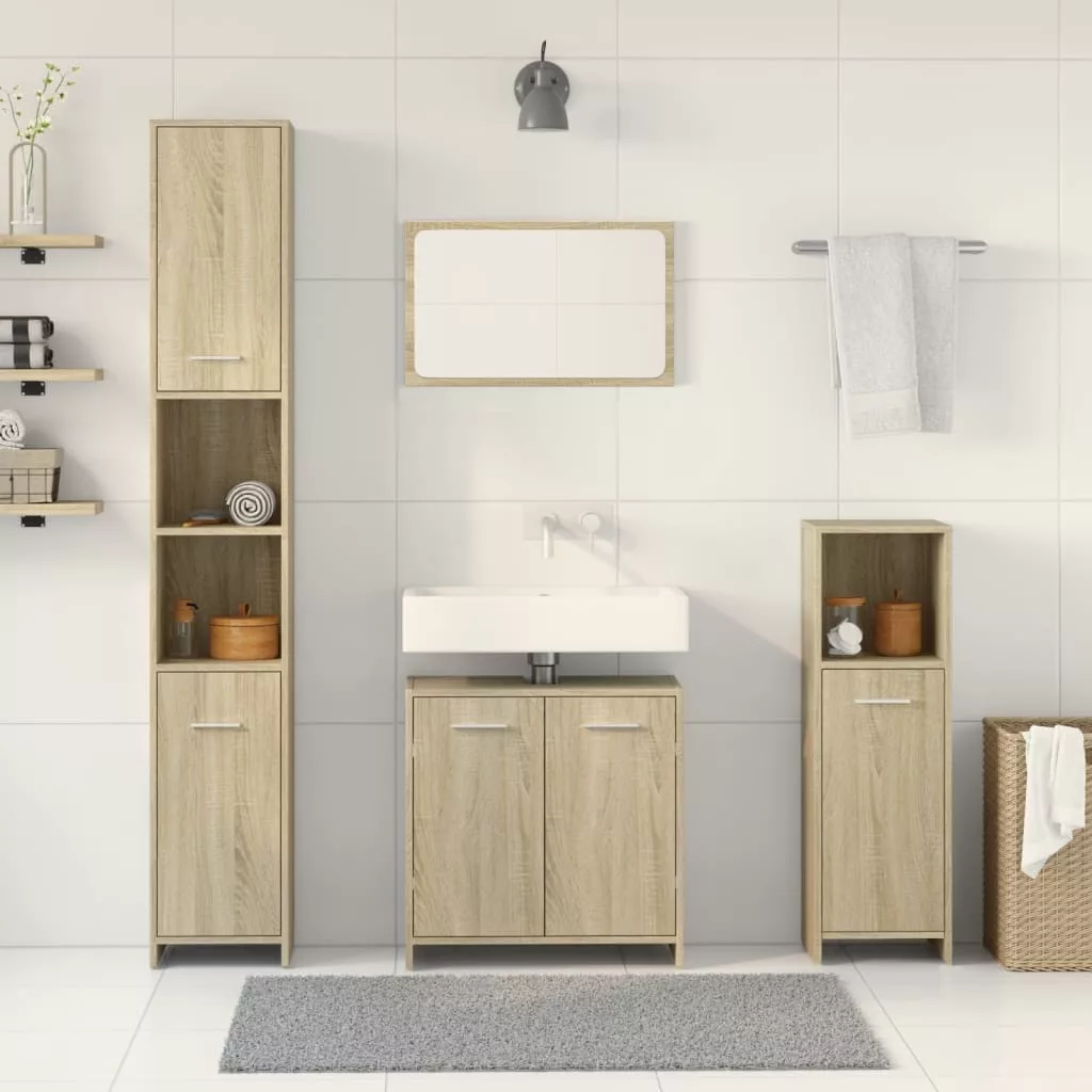 4 részes sonoma tölgyszínű szerelt fa fürdőszobai bútorszett
