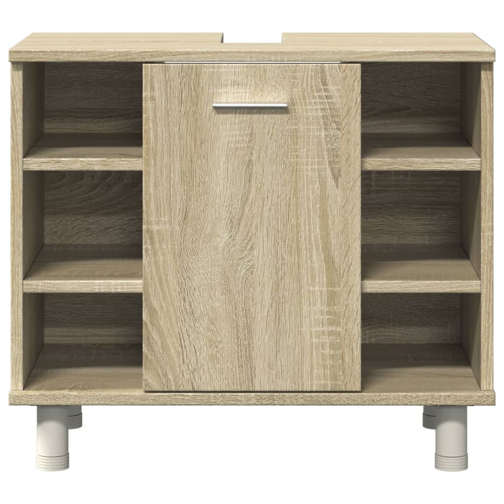 4 részes sonoma tölgyszínű szerelt fa fürdőszobai bútorszett
