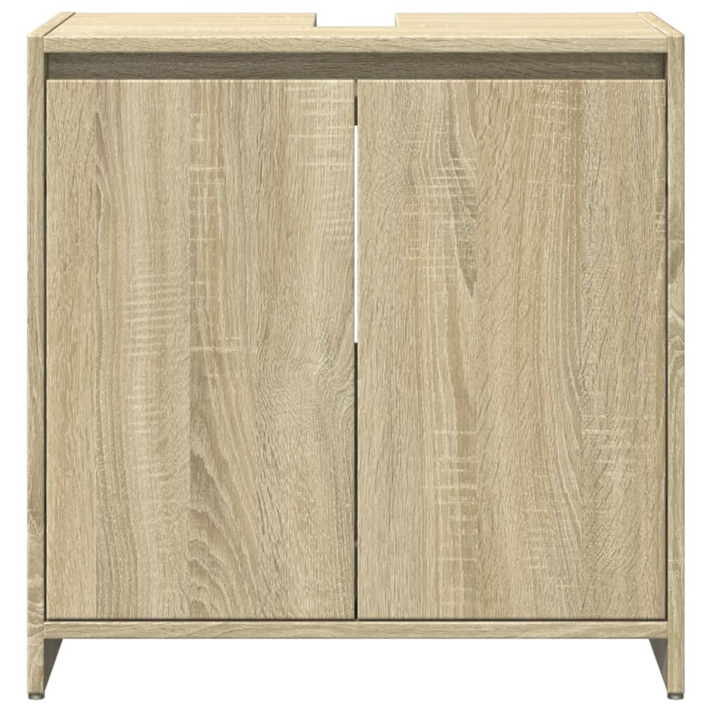 3 részes sonoma tölgyszínű szerelt fa fürdőszobai bútorszett