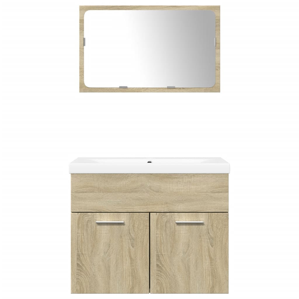 3 részes sonoma tölgyszínű szerelt fa fürdőszobai bútorszett