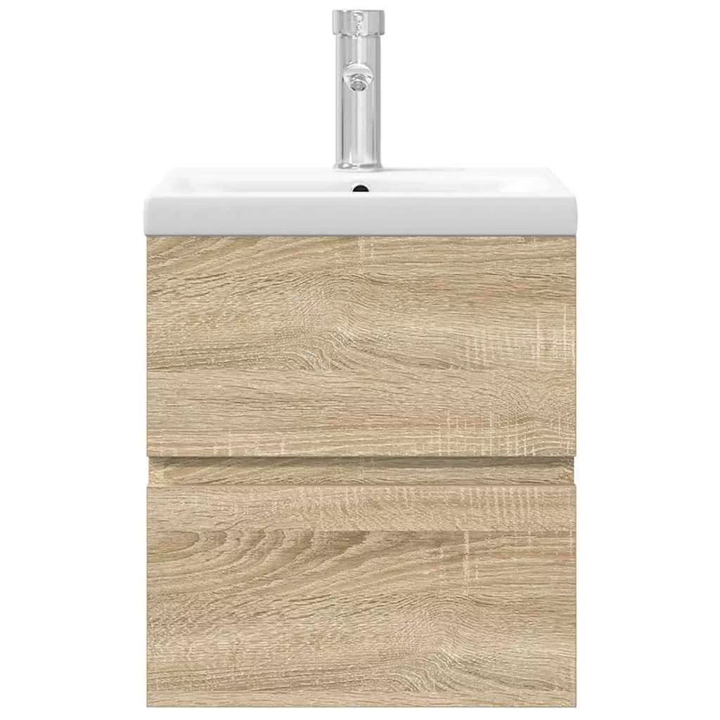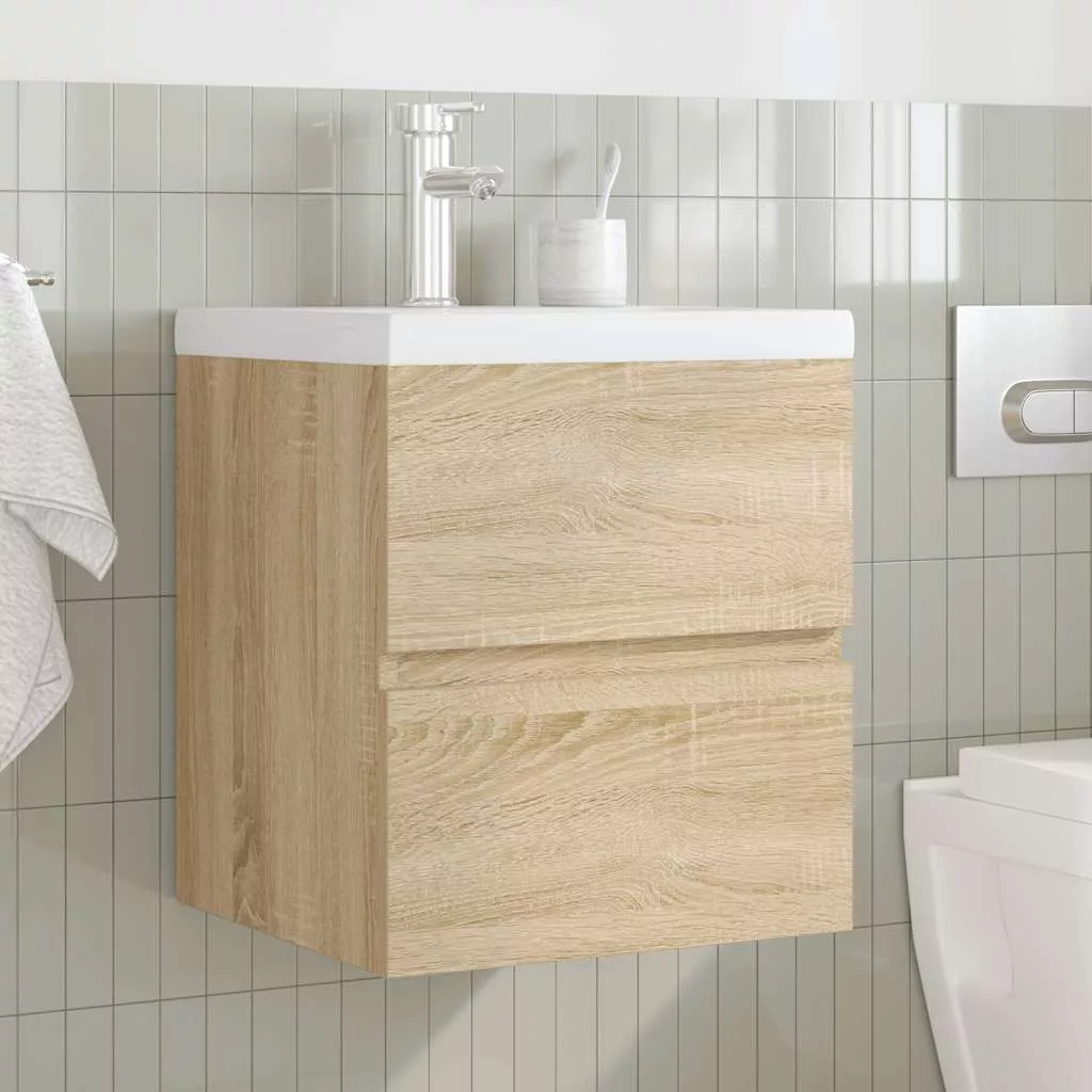 2 részes sonoma tölgyszínű szerelt fa fürdőszobai bútorszett