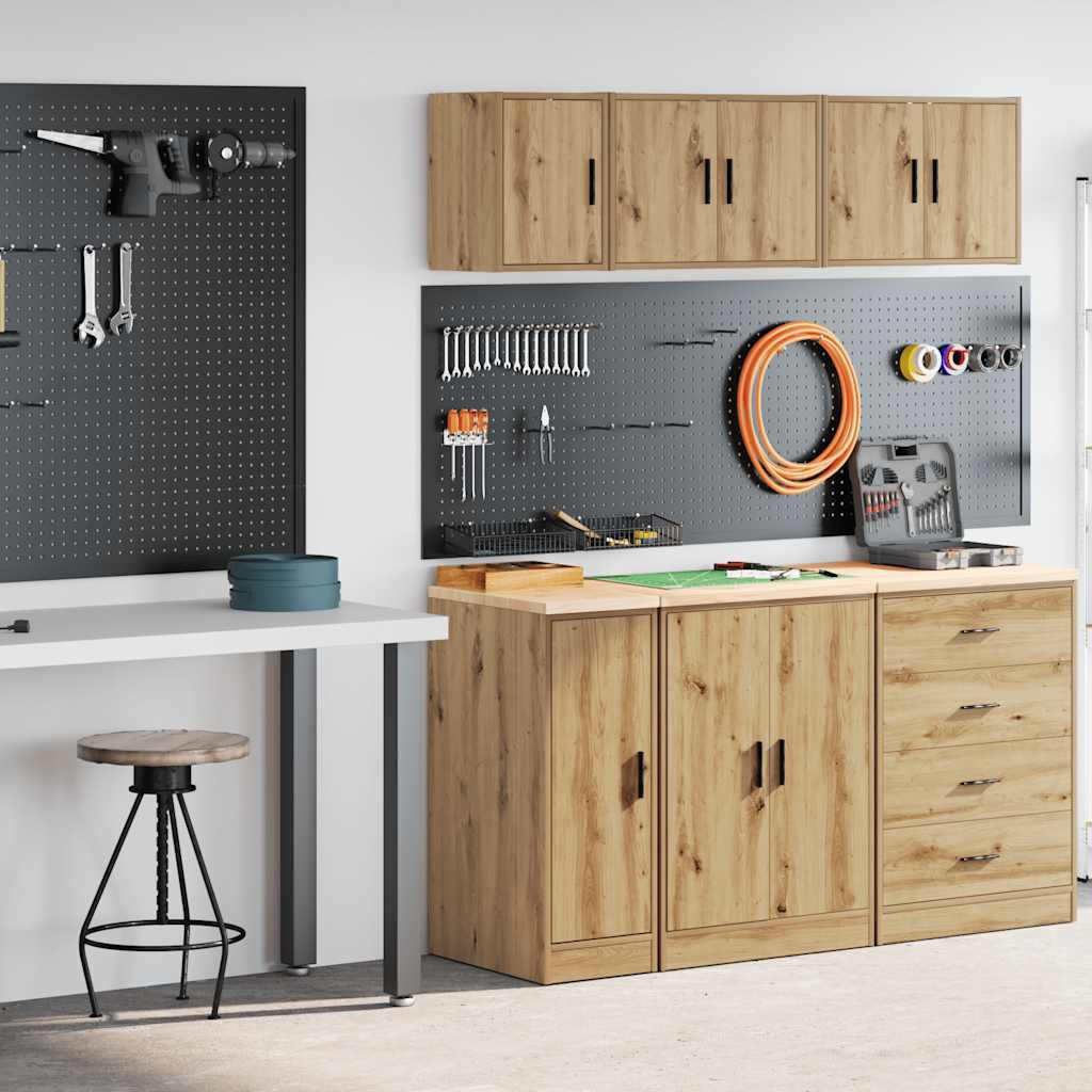2 db kézműves tölgy színű szerelt fa garázs szekrények