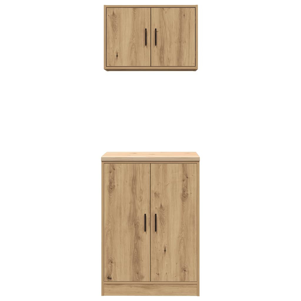 2 db kézműves tölgy színű szerelt fa garázs szekrények