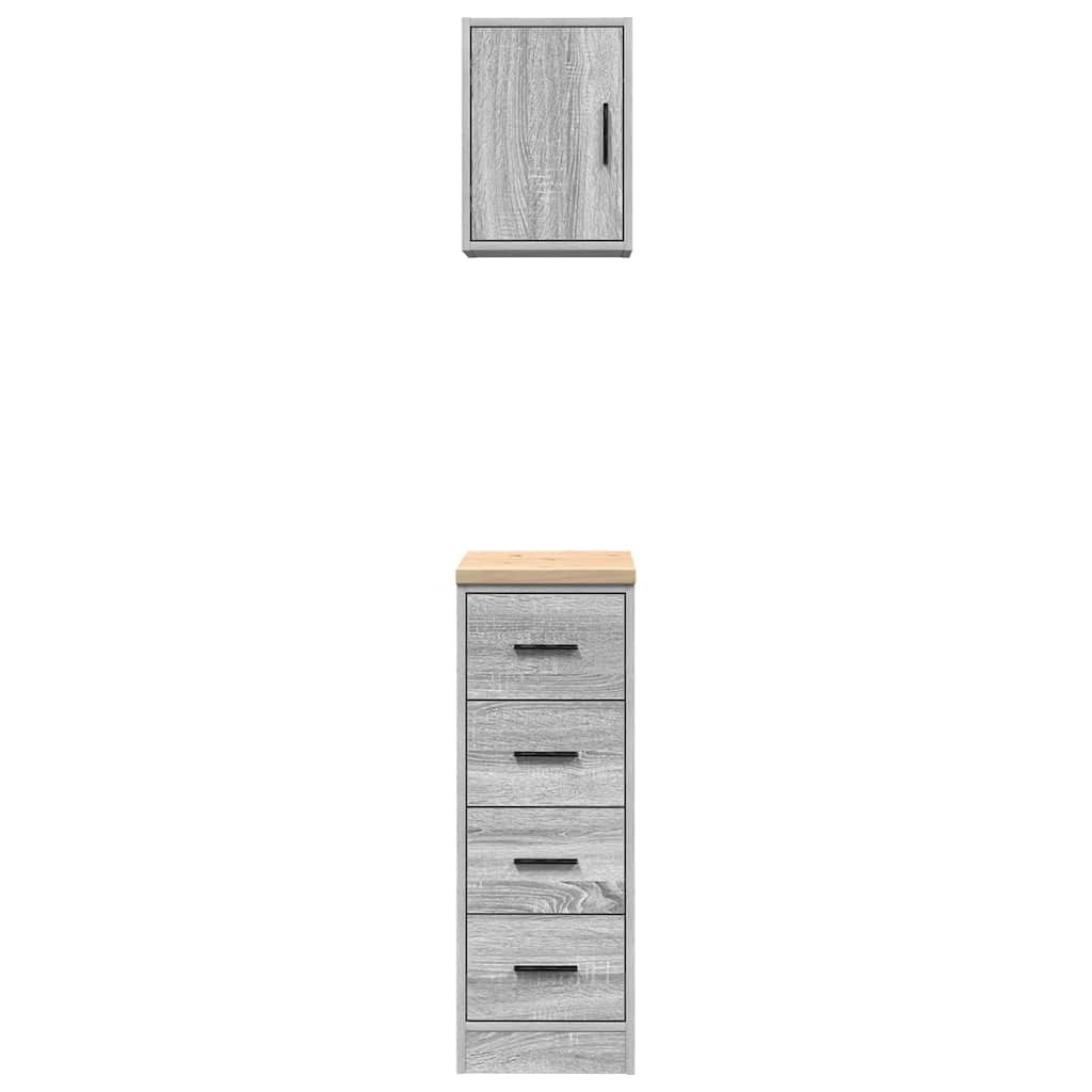 2 db szürke sonoma színű szerelt fa garázs szekrények