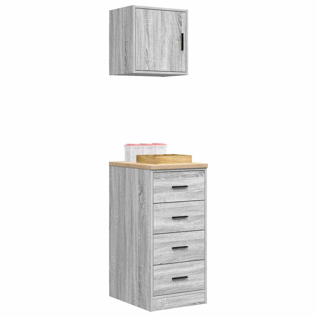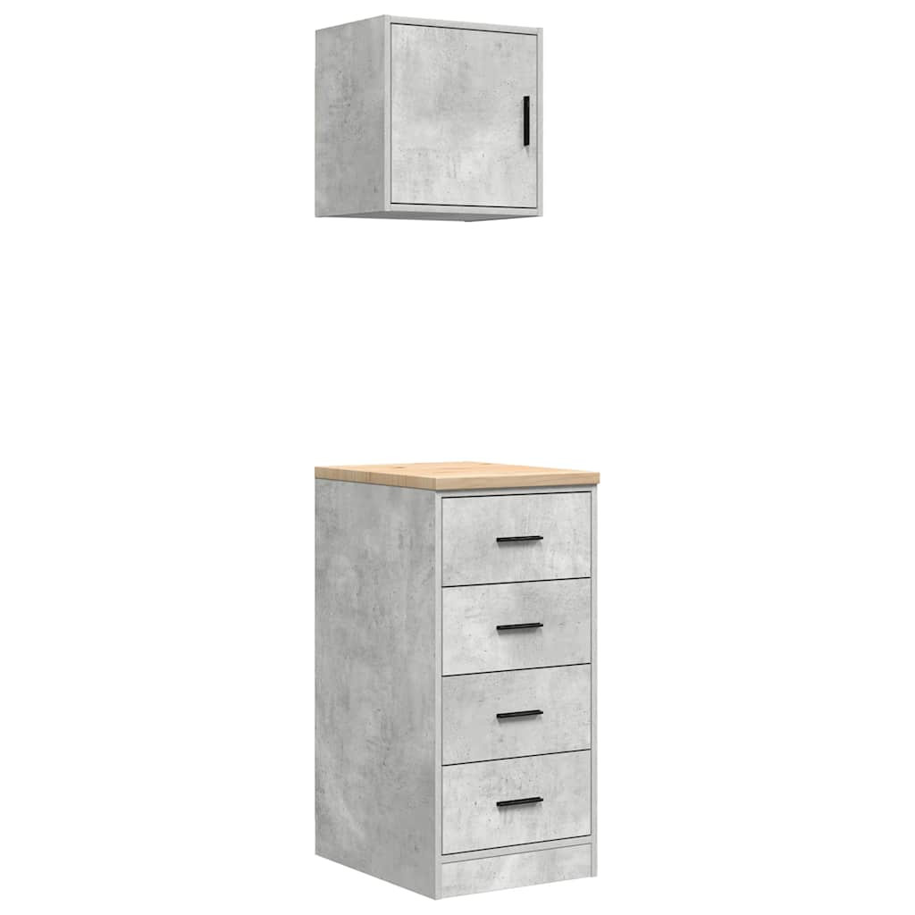 2 db betonszürke szerelt fa garázs szekrények