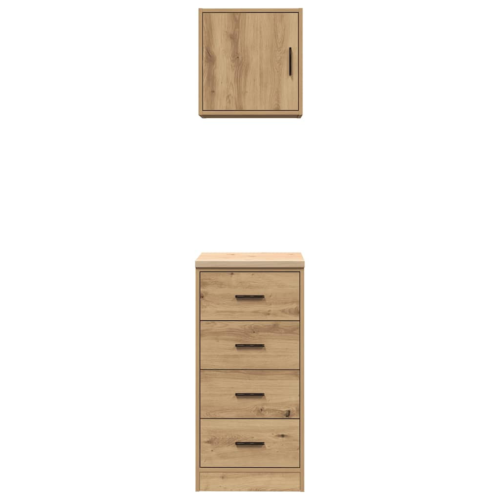 2 db kézműves tölgy színű szerelt fa garázs szekrények
