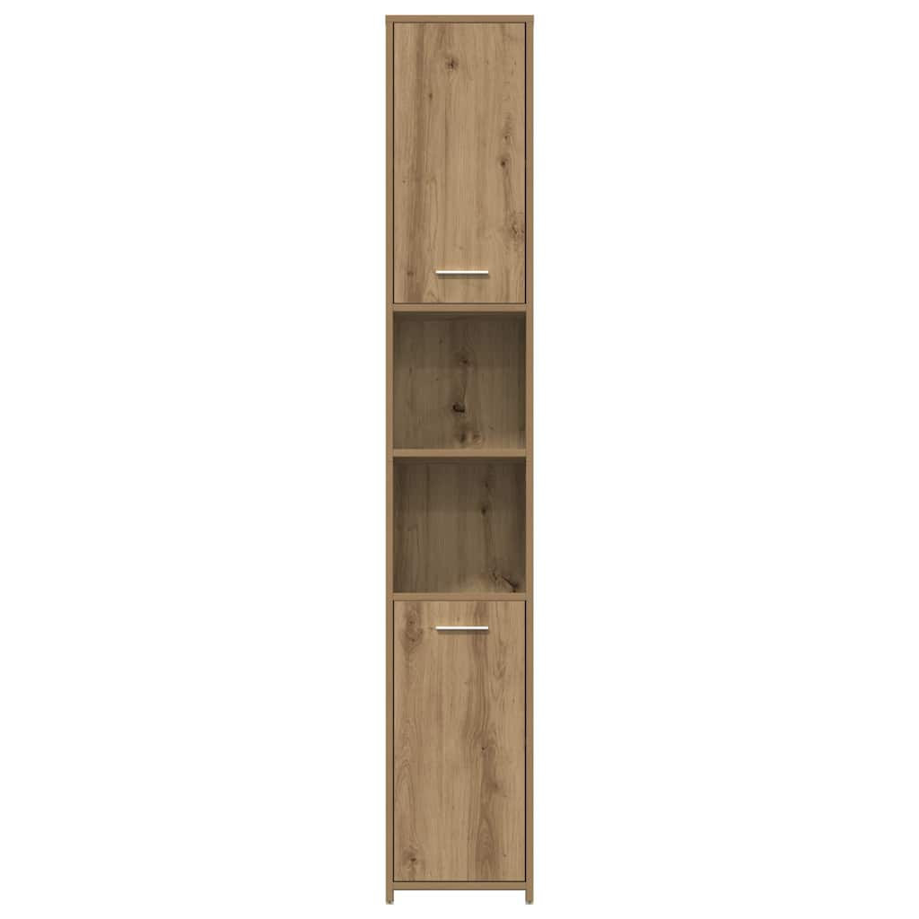 4 részes kézműves tölgy színű szerelt fa fürdőszobai bútorszett