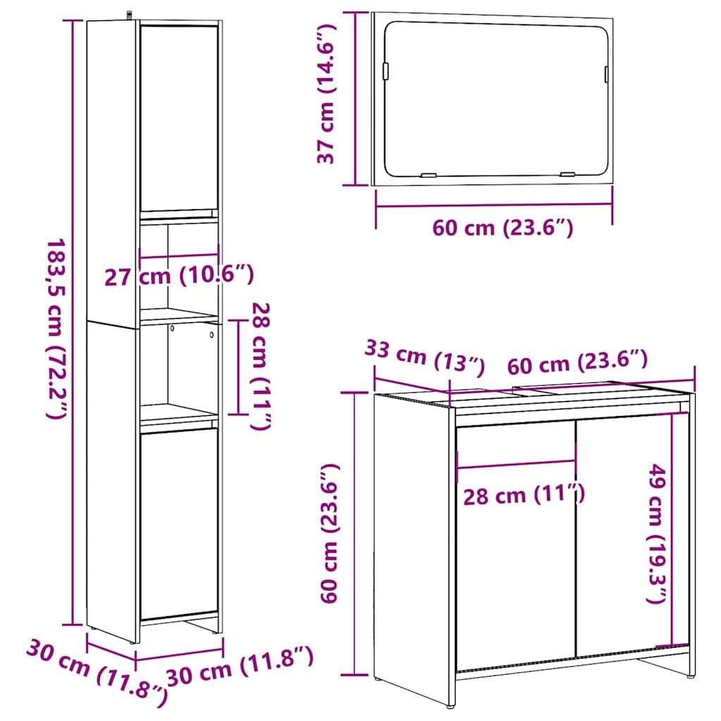 3 részes kézműves tölgy színű szerelt fa fürdőszobai bútorszett