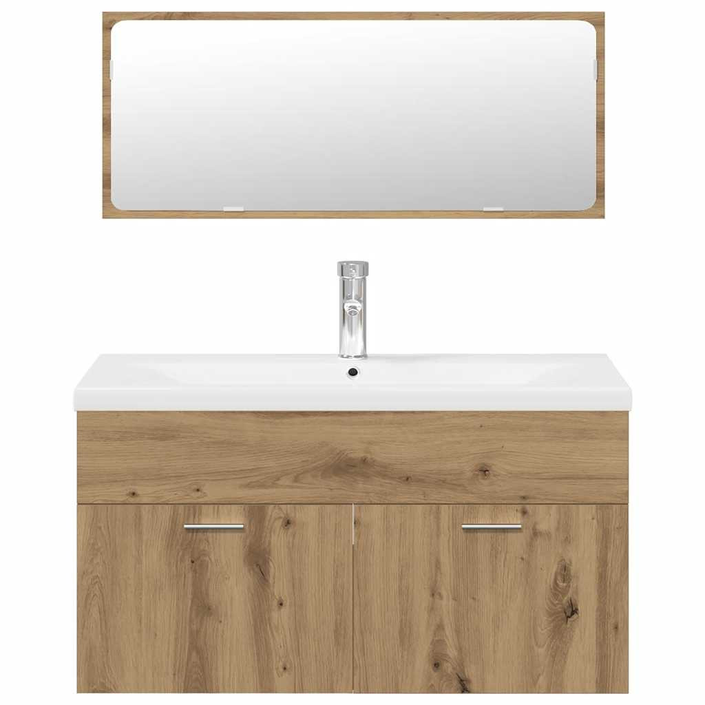 3 részes kézműves tölgy színű szerelt fa fürdőszobai bútorszett