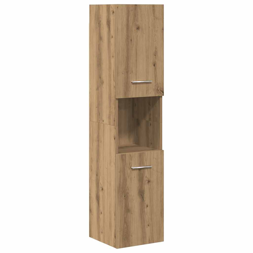 4 részes kézműves tölgy színű szerelt fa fürdőszobai bútorszett