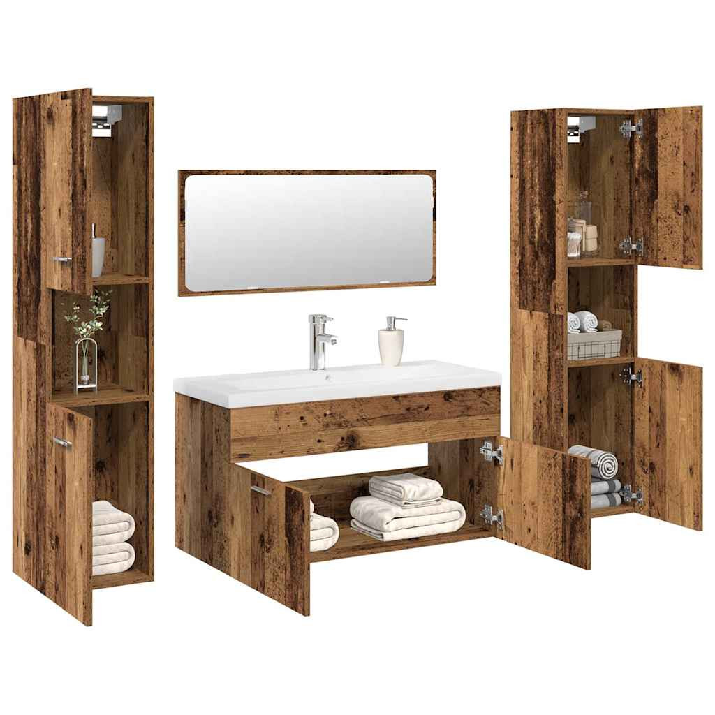 5 részes antik fa színű szerelt fa fürdőszobai bútorszett