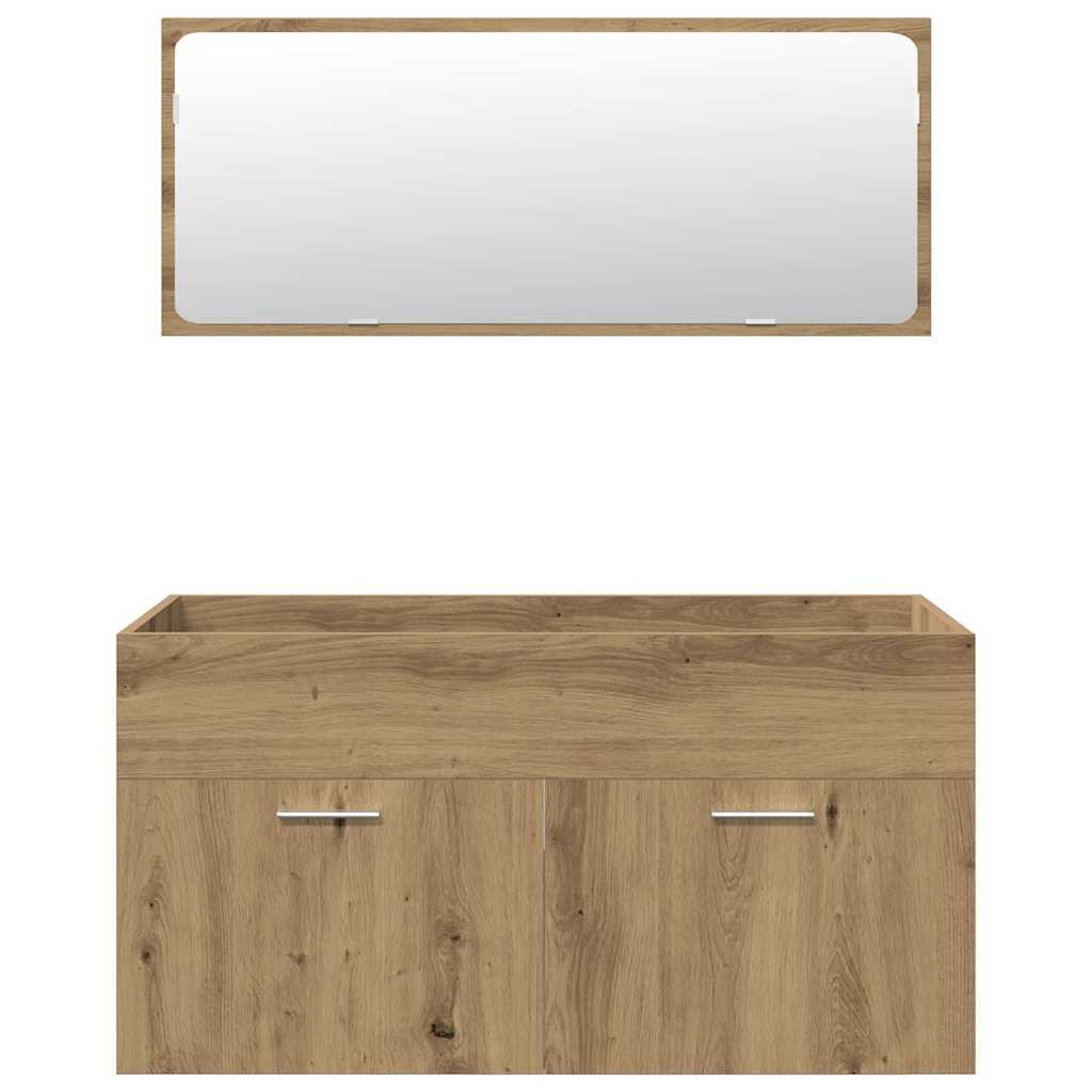 4 részes kézműves tölgy színű szerelt fa fürdőszobai bútorszett