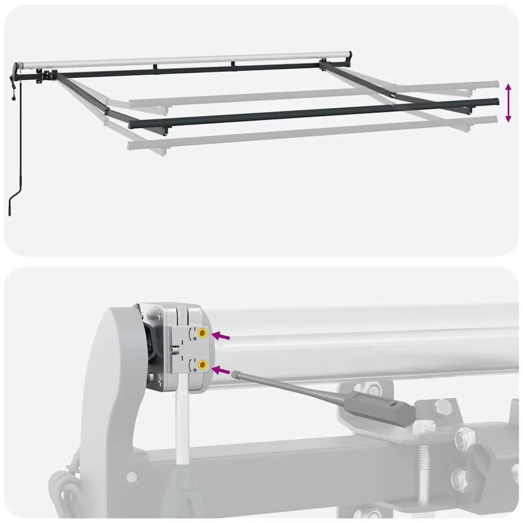 Ez a modern kihúzható napernyő kifejezetten kültéri kertekhez és teraszokhoz készült, stílus és praktikum egyaránt kiváló. Szép, sima dizájnja csíkos mintával élettelibb megjelenést ad, miközben árnyékot biztosít a forró nyári napokon. Európai ihletésű stílus Ideális a modern kültéri helyszínekhez, az ernyő dizájnja elegáns vonalakkal rendelkezik, amelyek tökéletesen illeszkednek bármely terasz vagy patio elrendezésébe. A kihúzható forma praktikus megoldás a napfénytől függően. Robusztus anyagok Az ernyő szövetből készült, aminek köszönhetően tartós és ellenáll az UV-sugárzásnak, valamint a vízkárnak. Az alumíniumvázak erősítik a szerkezetet, egyúttal megkönnyítik a kezelését és telepítését. Rugalmas funkcionalitás A kihúzható dizájn lehetővé teszi, hogy az ernyő teljesen kinyújtható legyen a maximális árnyékolás érdekében, vagy visszahúzódhasson a helytakarékos megoldásokhoz. Ez a funkció segít a napfény szintjének megfelelő alkalmazkodásban, így kényelmesebb a használata. Könnyű gondozás és karbantartás Az ernyő minimális karbantartást igényel, mindössze egy nedves ruhával való letörlés elegendő. Az anyagok úgy lettek tervezve, hogy ellenálljanak a különböző időjárási viszontagságoknak, ezzel biztosítva a hosszú élettartamot. Alkalmazkodik szinte minden környezethez Akár kertben, teraszon, akár a medence mellett használod, ez az ernyő remek árnyékolási megoldást nyújt a különböző kültéri helyszínekhez. Tökéletes nyári összejövetelekhez vagy pihenéshez. Veszély! Kinyitáskor a rugó erősen kipattan. NE távolítsa el a kötelet addig, amíg az összes összeszerelési lépést be nem fejezte, az összes csavart nem rögzítette és az elem nincs a falhoz rögzítve! Figyelem! Legyen óvatos a karok kilazításakor, mert azok feszültség alatt állnak! Az összecsukható kar hirtelen kiengedése sérülést okozhat. Figyelmeztetés: A termék használata előtt el kell olvasni a használati útmutatót. Figyelem: A fagyos körülmények között történő használat kárt tehet a termékben. Külső felhasználás épületeknél és egyéb építkezéseknél. Ne engedje, hogy a gyerekek a redőny vezérlőeszközével játszanak. Tartsa a távirányítót távol a gyermekektől.