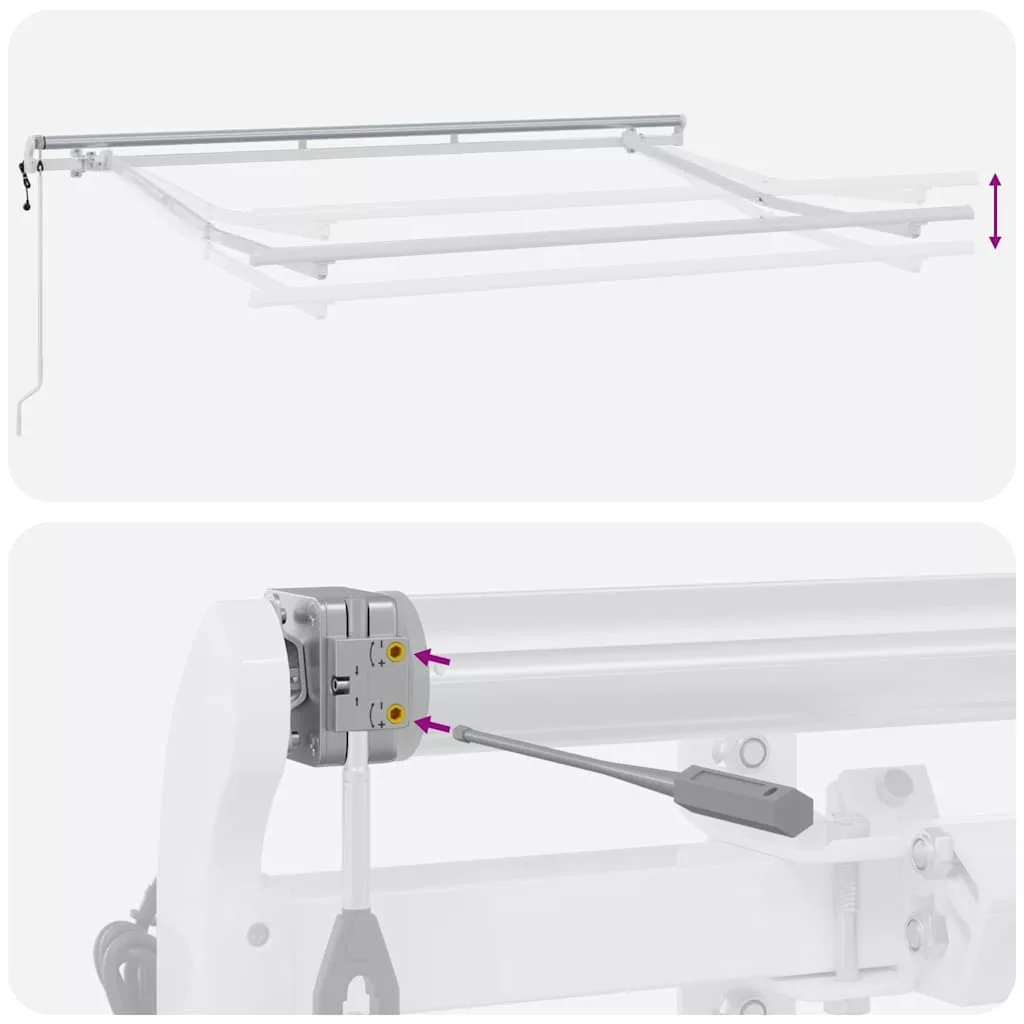 Ez a modern kihúzható napernyő kifejezetten kültéri kertekhez és teraszokhoz készült, stílus és praktikum egyaránt kiváló. Szép, sima dizájnja csíkos mintával élettelibb megjelenést ad, miközben árnyékot biztosít a forró nyári napokon. Európai ihletésű stílus Ideális a modern kültéri helyszínekhez, az ernyő dizájnja elegáns vonalakkal rendelkezik, amelyek tökéletesen illeszkednek bármely terasz vagy patio elrendezésébe. A kihúzható forma praktikus megoldás a napfénytől függően. Robusztus anyagok Az ernyő szövetből készült, aminek köszönhetően tartós és ellenáll az UV-sugárzásnak, valamint a vízkárnak. Az alumíniumvázak erősítik a szerkezetet, egyúttal megkönnyítik a kezelését és telepítését. Rugalmas funkcionalitás A kihúzható dizájn lehetővé teszi, hogy az ernyő teljesen kinyújtható legyen a maximális árnyékolás érdekében, vagy visszahúzódhasson a helytakarékos megoldásokhoz. Ez a funkció segít a napfény szintjének megfelelő alkalmazkodásban, így kényelmesebb a használata. Könnyű gondozás és karbantartás Az ernyő minimális karbantartást igényel, mindössze egy nedves ruhával való letörlés elegendő. Az anyagok úgy lettek tervezve, hogy ellenálljanak a különböző időjárási viszontagságoknak, ezzel biztosítva a hosszú élettartamot. Alkalmazkodik szinte minden környezethez Akár kertben, teraszon, akár a medence mellett használod, ez az ernyő remek árnyékolási megoldást nyújt a különböző kültéri helyszínekhez. Tökéletes nyári összejövetelekhez vagy pihenéshez. Veszély! Kinyitáskor a rugó erősen kipattan. NE távolítsa el a kötelet addig, amíg az összes összeszerelési lépést be nem fejezte, az összes csavart nem rögzítette és az elem nincs a falhoz rögzítve! Figyelem! Legyen óvatos a karok kilazításakor, mert azok feszültség alatt állnak! Az összecsukható kar hirtelen kiengedése sérülést okozhat. Figyelmeztetés: A termék használata előtt el kell olvasni a használati útmutatót. Figyelem: A fagyos körülmények között történő használat kárt tehet a termékben. Külső felhasználás épületeknél és egyéb építkezéseknél. Ne engedje, hogy a gyerekek a redőny vezérlőeszközével játszanak. Tartsa a távirányítót távol a gyermekektől.