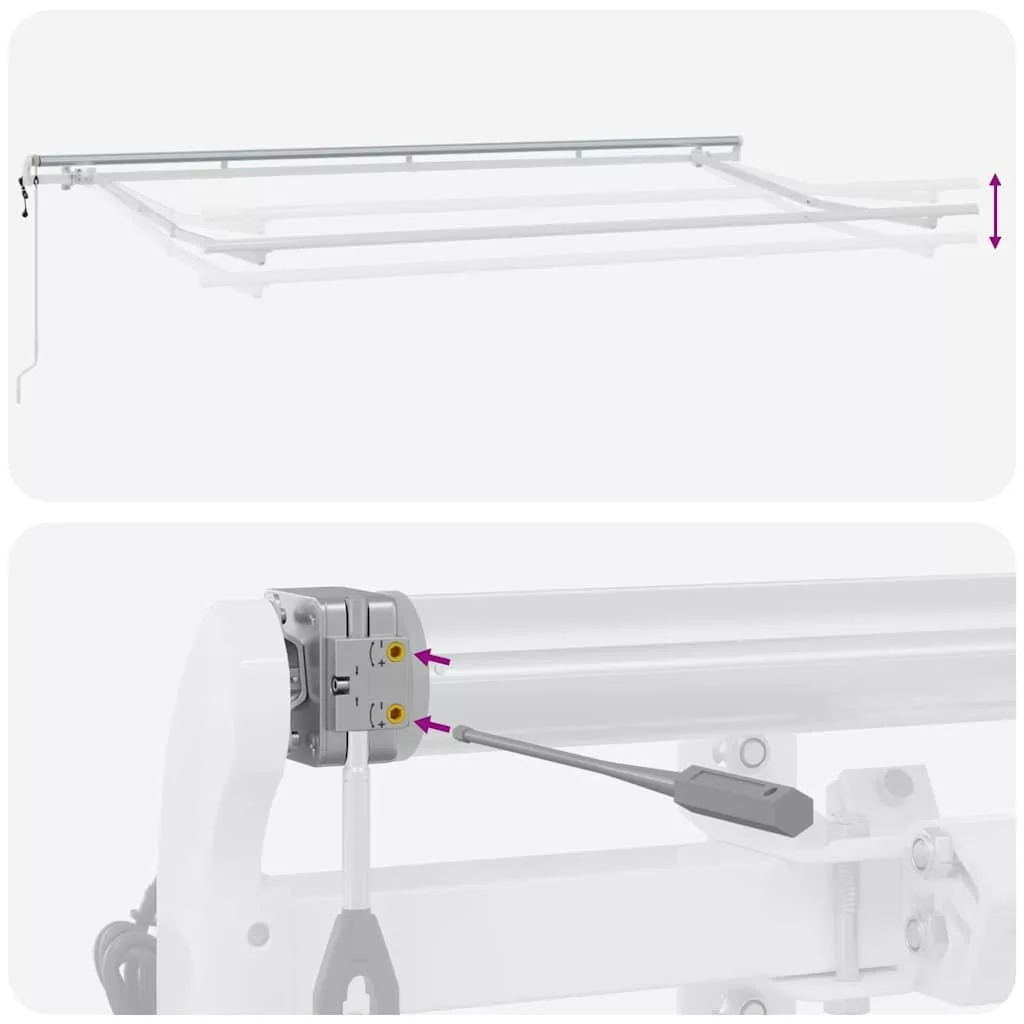 Ez a modern kihúzható napernyő kifejezetten kültéri kertekhez és teraszokhoz készült, stílus és praktikum egyaránt kiváló. Szép, sima dizájnja csíkos mintával élettelibb megjelenést ad, miközben árnyékot biztosít a forró nyári napokon. Európai ihletésű stílus Ideális a modern kültéri helyszínekhez, az ernyő dizájnja elegáns vonalakkal rendelkezik, amelyek tökéletesen illeszkednek bármely terasz vagy patio elrendezésébe. A kihúzható forma praktikus megoldás a napfénytől függően. Robusztus anyagok Az ernyő szövetből készült, aminek köszönhetően tartós és ellenáll az UV-sugárzásnak, valamint a vízkárnak. Az alumíniumvázak erősítik a szerkezetet, egyúttal megkönnyítik a kezelését és telepítését. Rugalmas funkcionalitás A kihúzható dizájn lehetővé teszi, hogy az ernyő teljesen kinyújtható legyen a maximális árnyékolás érdekében, vagy visszahúzódhasson a helytakarékos megoldásokhoz. Ez a funkció segít a napfény szintjének megfelelő alkalmazkodásban, így kényelmesebb a használata. Könnyű gondozás és karbantartás Az ernyő minimális karbantartást igényel, mindössze egy nedves ruhával való letörlés elegendő. Az anyagok úgy lettek tervezve, hogy ellenálljanak a különböző időjárási viszontagságoknak, ezzel biztosítva a hosszú élettartamot. Alkalmazkodik szinte minden környezethez Akár kertben, teraszon, akár a medence mellett használod, ez az ernyő remek árnyékolási megoldást nyújt a különböző kültéri helyszínekhez. Tökéletes nyári összejövetelekhez vagy pihenéshez. Veszély! Kinyitáskor a rugó erősen kipattan. NE távolítsa el a kötelet addig, amíg az összes összeszerelési lépést be nem fejezte, az összes csavart nem rögzítette és az elem nincs a falhoz rögzítve! Figyelem! Legyen óvatos a karok kilazításakor, mert azok feszültség alatt állnak! Az összecsukható kar hirtelen kiengedése sérülést okozhat. Figyelmeztetés: A termék használata előtt el kell olvasni a használati útmutatót. Figyelem: A fagyos körülmények között történő használat kárt tehet a termékben. Külső felhasználás épületeknél és egyéb építkezéseknél. Ne engedje, hogy a gyerekek a redőny vezérlőeszközével játszanak. Tartsa a távirányítót távol a gyermekektől.