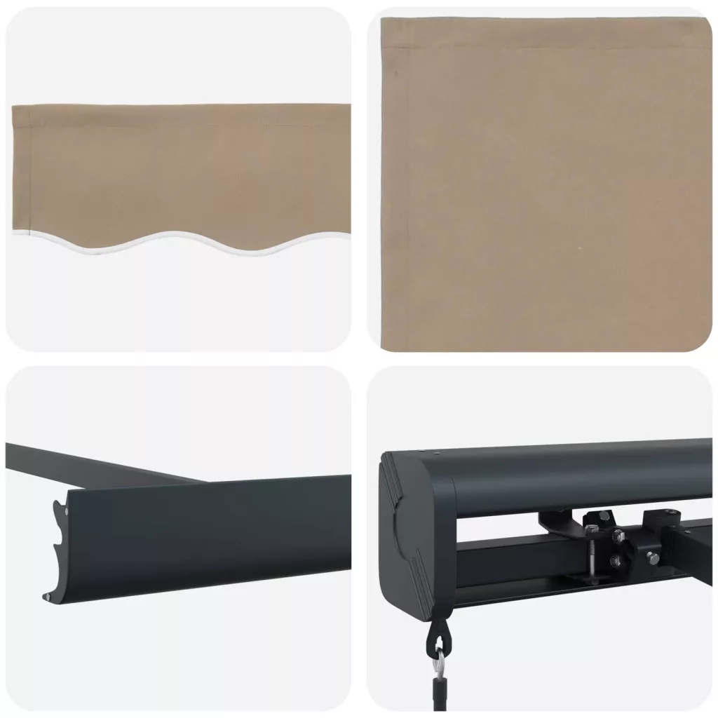 Ez a behúzható napellenző tökéletes példa a funkció és az egyszerűség modern dizájnba ötvözésére. Elegáns napernyő, ami védelmet nyújt a kertednek vagy a teraszodnak, ráadásul könnyen becsukható is. Képzeld el, milyen jó lenne egy stílusos délutáni összejövetelt tartani, ahol eső és napfény ellen is védve vagy, egy hely, ahol a kényelem találkozik a szabadban egy praktikus szerkezet keretein belül. Modern stílus: Ez az elegáns behúzható napellenző szépen illeszkedik a kültéri dekorációba. A letisztult dizájn és minimalista megoldások kombinációja vizuálisan vonzóvá teszi a teret. Anyag jellemzők: 100%-ban poliészterből készült, így tartósan védi a napsugárzástól és a víztől. Ez nemcsak hasznos, hanem jó befektetés is a minőségbe. A robusztus fémváz biztosítja a stabilitást és megőrzi a sima felületet. Alkatrészek: A behúzható mechanizmus lehetővé teszi, hogy gyorsan válts a kinyitott és zárt helyzet között, biztosítva árnyékot vagy nyitott teret a szükségleteid szerint. A rendszer megbízható és könnyen kezelhető, így ideális dinamikus környezethez. Karbantartási utasítások: A napellenződ megóvásához használd a takarót, amikor nem használod. Ez segít megőrizni a funkcionális állapotát és hosszabbítja az esztétikai vonzerejét, hogy évekig vonzó maradjon. Összeszerelési igények: A napellenző összeszereléséhez szükséges két ember, és alapvető szerszámok, például fúró, csavarhúzó és csavarkulcs. Az eljárás egyszerű, így gyorsan élvezheted az új napernyődet. Veszély! Kinyitáskor a rugó erősen kipattan. NE távolítsa el a kötelet addig, amíg az összes összeszerelési lépést be nem fejezte, az összes csavart nem rögzítette és az elem nincs a falhoz rögzítve! Figyelem! Legyen óvatos a karok kilazításakor, mert azok feszültség alatt állnak! Az összecsukható kar hirtelen kiengedése sérülést okozhat. Figyelmeztetés: A termék használata előtt el kell olvasni a használati útmutatót. Figyelem: A fagyos körülmények között történő használat kárt tehet a termékben. Külső felhasználás épületeknél és egyéb építkezéseknél.