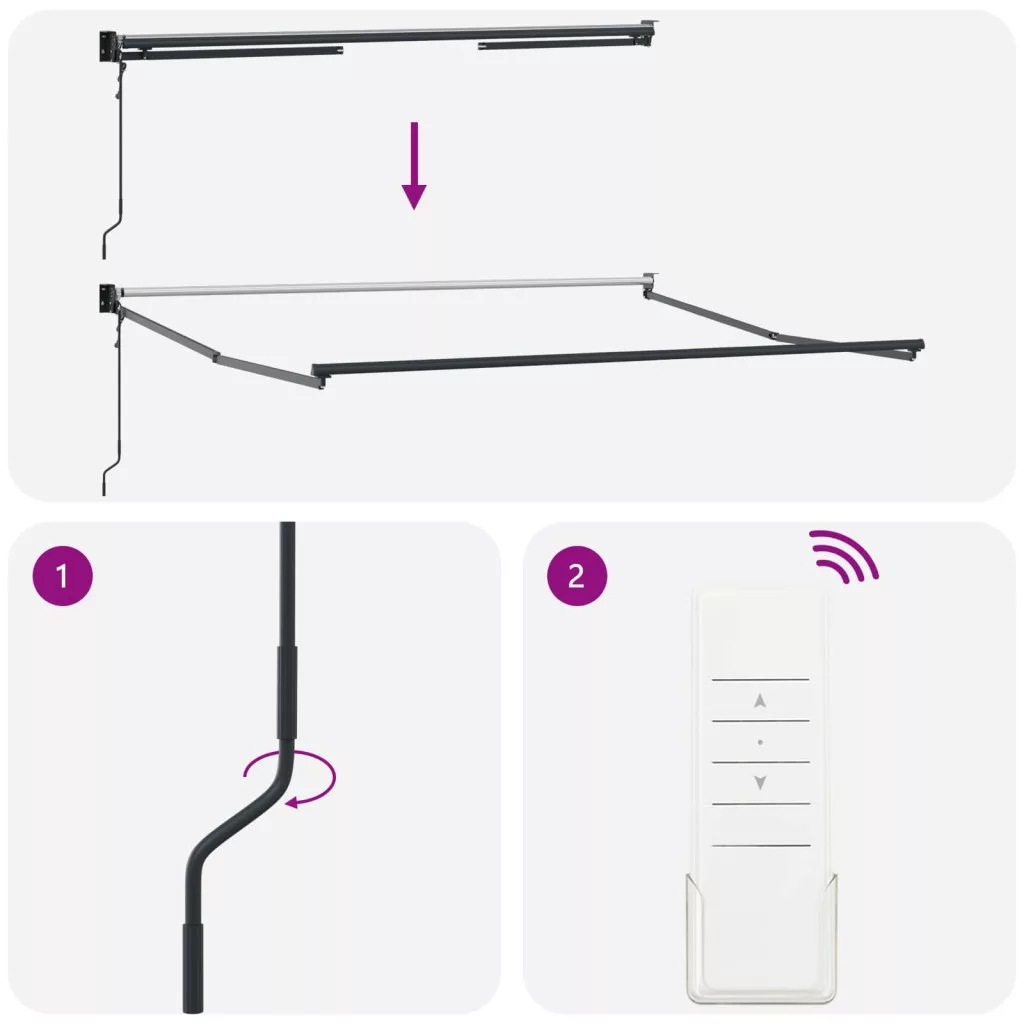 Ez a kihúzható napellenző modern kinézettel és praktikus funkciókkal rendelkezik, amik tökéletesen passzolnak a kerthez vagy teraszhoz. Letisztult vonalai és minimális díszítése feldobják a kültéri környezetedet, miközben rugalmas árnyékolási lehetőségeket kínálnak a nyári élvezetekhez. Az elegáns vonalak és a modern megjelenés simán beilleszkedik mindenféle kültéri díszbe, amik biztosítják, hogy fokozza a stílust és a kényelmet a kertedben vagy teraszodon. Akár parti szervezel, akár csak pihensz, ez a napellenző rugalmas és stílusos fedett megoldást nyújt bármilyen kültéri eseményhez. Anyagok: Ez a napellenző tartós poliészterből készült, UV-álló, így hosszú élettartamot biztosít, mivel nem fakul el és nem romlik el a napfény miatt. A poliészter szövet élénk marad, megbízható választás kültéri használatra. Az anyag választás fokozza a tartósságot és minimalizálja a karbantartást, hiszen ellenáll a külső kopásnak, így hosszabb ideig bírja. Benntartott alkatrészek: A napellenző csomagban egy nagyobb topp található egy erős 300 x 250 x 165 cm-es kerettel. Minden alkatrész a megfelelő erő és stabilitás érdekében lett megtervezve. A kihúzható mechanizmussal a felhasználó könnyedén állíthatja az árnyékolást, ahogy éppen szükséges. Ez a rugalmas beállítás gyors árnyékolási lehetőséget ad a kültéri tér átalakításához. Jellemzők/Funkció/Design: A napellenző simán kihúzható, ez megkönnyíti az árnyék beállítását. Ez a funkció feldobja a kültéri életet, lehetővé téve a kert és terasz felfedezését anélkül, hogy a napsütés miatt kelljen aggódnod. A letisztult, modern dizájn jól passzol különböző építészeti stílusokhoz, fokozva ezzel a kültéri környezet szépségét. Ajánlott használat: Tökéletes kertekhez és teraszokhoz, ez a napellenző alapvető kiegészítő a kültéri rajongóknak. Kényelmes árnyékot ad, ami ideális baráti összejövetelekhez vagy nyugodt pillanatokhoz. Alkalmazkodó a különböző környezetekhez, így ez a napernyő bármilyen kültéri helyet vonzó menedékké varázsolhat. Legyen a szó egy családi összejövetelről vagy egy nagyobb ünnepségről, alkalmazkodóképessége biztosítja a rugalmas nyári élvezeteket. Karbantartás: A napellenző tisztántartása és funkcionalitásának megőrzése egyszerű. Rendszeres karbantartás keretében egy száraz ruhával tisztítsd meg. A legjobb eredmény érdekében húzd be a napellenzőt, ha rossz idő van, hogy megelőzd a károkat és hosszabbítsd meg az élettartamát. Ezek az egyszerű karbantartási lépések segítenek biztosítani, hogy a napellenző megbízhatóan teljesítsen használat közben. Veszély! Kinyitáskor a rugó erősen kipattan. NE távolítsa el a kötelet addig, amíg az összes összeszerelési lépést be nem fejezte, az összes csavart nem rögzítette és az elem nincs a falhoz rögzítve! Figyelem! Legyen óvatos a karok kilazításakor, mert azok feszültség alatt állnak! Az összecsukható kar hirtelen kiengedése sérülést okozhat. Figyelmeztetés: A termék használata előtt el kell olvasni a használati útmutatót. Figyelem: A fagyos körülmények között történő használat kárt tehet a termékben. Külső felhasználás épületeknél és egyéb építkezéseknél. Ne engedje, hogy a gyerekek a redőny vezérlőeszközével játszanak. Tartsa a távirányítót távol a gyermekektől.