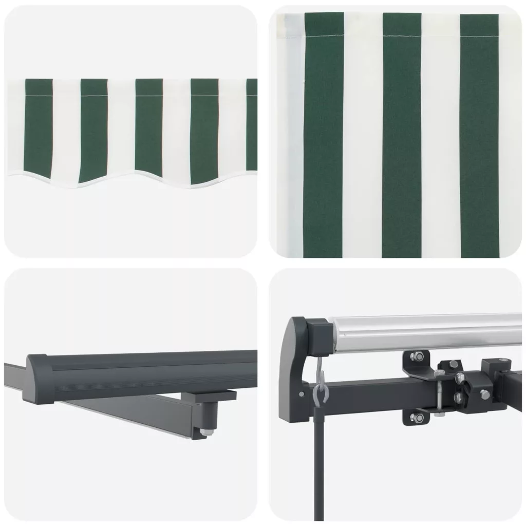Behúzható napellenző Zöld és fehér 300 x 250 cm szövet