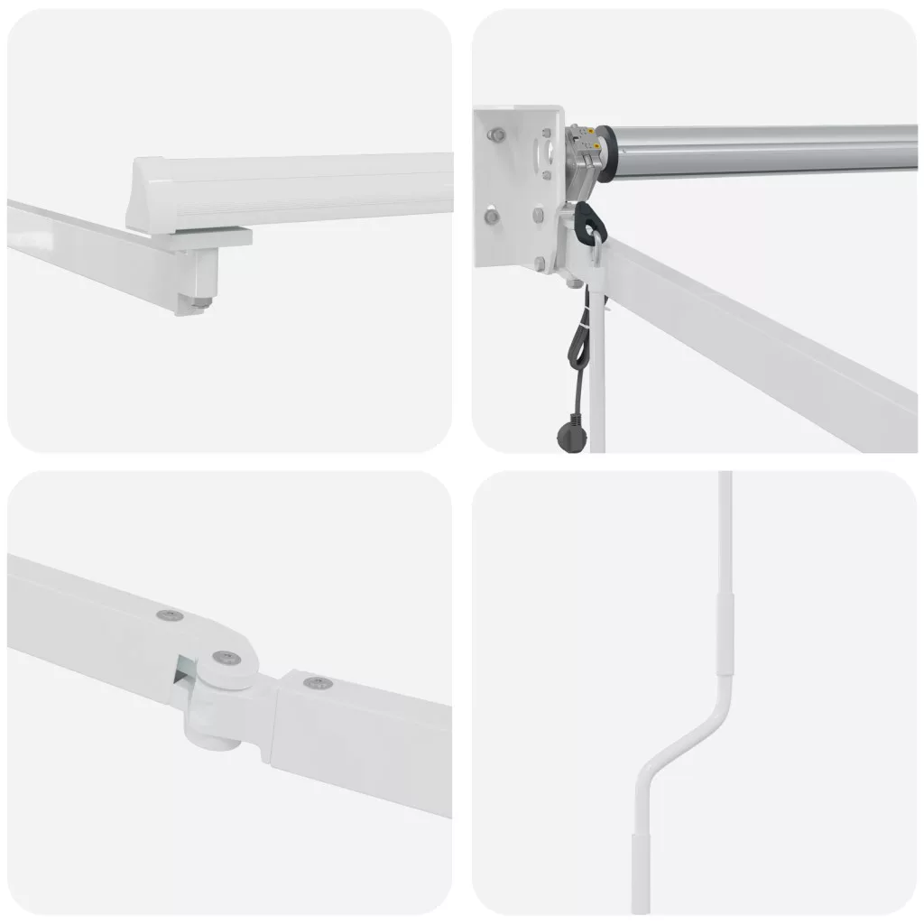 Ez a teraszi napernyő egyedi stílust és praktikát hoz, élénk sárga és barack csíkokkal. Tökéletes erkélyekhez és kertekhez, nagyszerű árnyékot ad, míg kortárs hangulatot kölcsönöz kültéri dekorációdnak. Tartós Anyag: Akril, ami jól bírja az UV sugarakat, így hosszú élettartamra készült. Vízálló: Az anyag úgy van kezelve, hogy taszítja a könnyű esőt, így nem lesz gond, ha csepeg az eső. Könnyű Telepítés: Egyszerűen beállítható, nem kell bonyolult összeszerelgetés; csak rögzítsd, és már élvezheted is. Helytakarékos: A behúzható dizájn lehetővé teszi, hogy igény szerint kinyisd vagy visszahúzd, tökéletes a napsütés változásaihoz. Kortárs Design: A divatos csíkos megjelenés nemcsak jól működik, hanem stílust is ad kültéri terednek, ideális a modern környezetekhez. Veszély! Kinyitáskor a rugó erősen kipattan. NE távolítsa el a kötelet addig, amíg az összes összeszerelési lépést be nem fejezte, az összes csavart nem rögzítette és az elem nincs a falhoz rögzítve! Figyelem! Legyen óvatos a karok kilazításakor, mert azok feszültség alatt állnak! Az összecsukható kar hirtelen kiengedése sérülést okozhat. Figyelmeztetés: A termék használata előtt el kell olvasni a használati útmutatót. Figyelem: A fagyos körülmények között történő használat kárt tehet a termékben. Külső felhasználás épületeknél és egyéb építkezéseknél. Ne engedje, hogy a gyerekek a redőny vezérlőeszközével játszanak. Tartsa a távirányítót távol a gyermekektől.