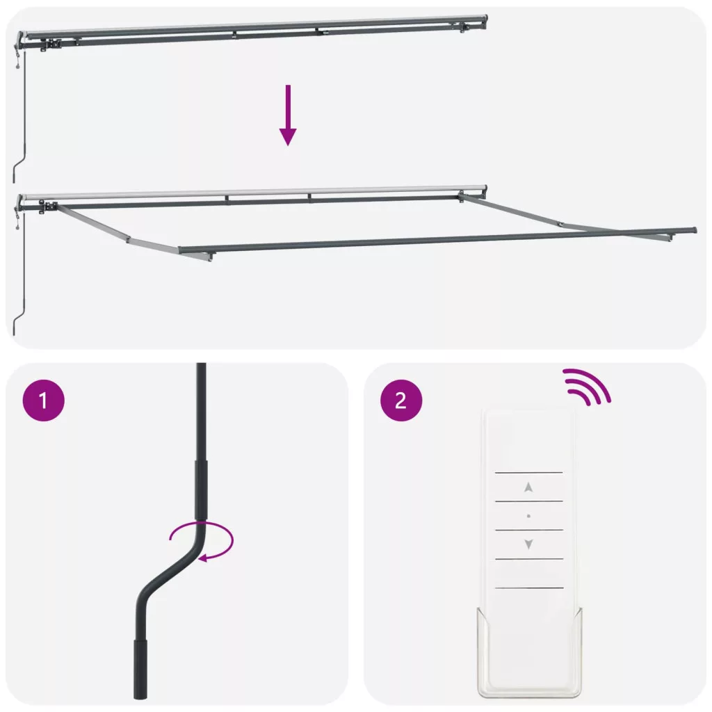 Ez a modern behúzható napellenző egy stílusos és praktikus megoldás a kültéri árnyékolásra, ideális kertekhez és teraszokhoz. Szép, letisztult dizájnja miatt jól illeszkedik a mai trendekhez, így szuper kiegészítése a kortárs kültéri tereknek. Fesztiválok alatt vagy baráti összejövetelekhez tökéletes védelmet nyújt a napsütés és az eső ellen, míg kényelmes helyet biztosít a lazításhoz. Anyagösszetétel: Strapabíró és könnyű alumíniumból készült, ez a napellenző stabilitást és megbízhatóságot nyújt. UV-álló és vízálló, így ideális kültéri használatra. Az alumínium váz biztosítja, hogy a napellenző jól bírja az időjárást, még a rossz napokon is. Altalános alkotóelemek: A csomagban minden fontos elem benne van: napellenző anyag, erős alumínium keret és távirányító a könnyű működtetéshez. Ezek mind hozzájárulnak a használat egyszerűségéhez és a zökkenőmentes működéshez. Könnyen behúzható: A napellenző behúzható, így gyorsan tudod igazítani az árnyékot a nap mozgásához. A manuális beállítás mellett a távirányító lehetősége nagyon kényelmes és ideális mindenki számára. Szezonális használat: Tökéletes a nyáron, mivel árnyékot ad a hűvös területekhez, miközben védi az UV-sugaraktól. Nagy előnyt jelent a napfényes napokon bármely kert vagy terasz számára. Karbantartási utasítások: Két ember és csavarhúzó segít az összeszerelésnél. Rendszeresen ellenőrizd a napellenzőt a törmelékek miatt, és tisztítsd enyhe szappannal. Ez meghosszabbítja az élettartamát és megőrzi a szép megjelenését. Veszély! Kinyitáskor a rugó erősen kipattan. NE távolítsa el a kötelet addig, amíg az összes összeszerelési lépést be nem fejezte, az összes csavart nem rögzítette és az elem nincs a falhoz rögzítve! Figyelem! Legyen óvatos a karok kilazításakor, mert azok feszültség alatt állnak! Az összecsukható kar hirtelen kiengedése sérülést okozhat. Figyelmeztetés: A termék használata előtt el kell olvasni a használati útmutatót. Figyelem: A fagyos körülmények között történő használat kárt tehet a termékben. Külső felhasználás épületeknél és egyéb építkezéseknél. Ne engedje, hogy a gyerekek a redőny vezérlőeszközével játszanak. Tartsa a távirányítót távol a gyermekektől.