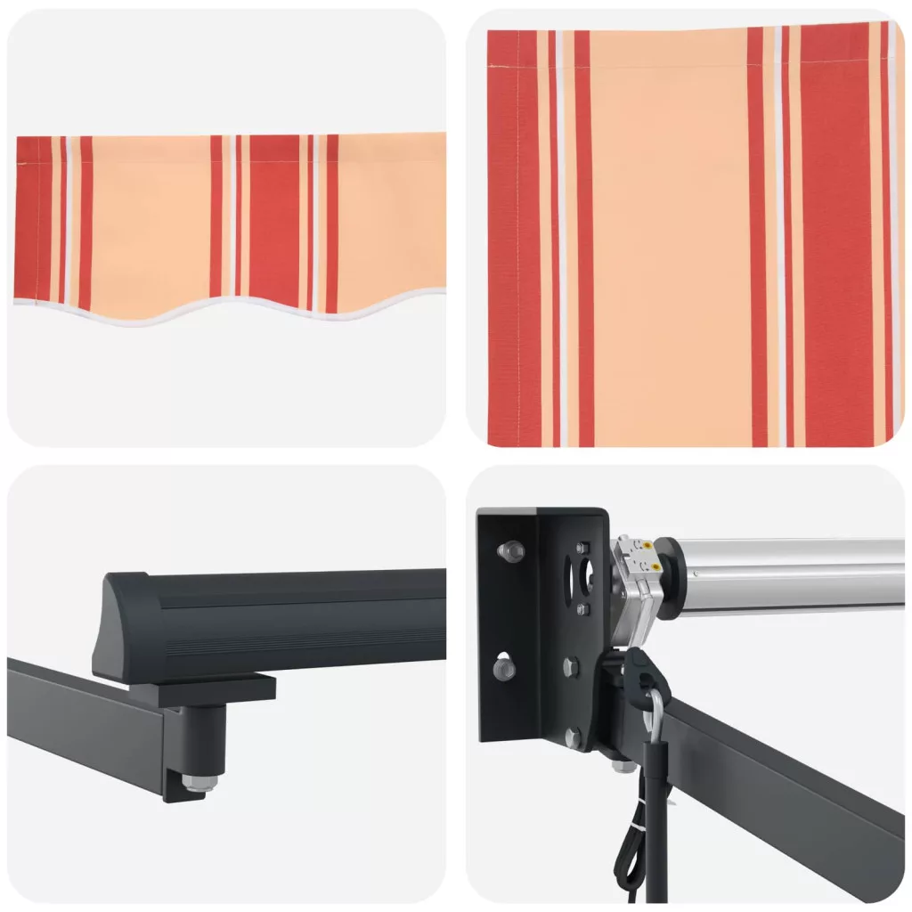 Ez a modern behúzható napellenző ideális kiegészítője bárminek kint, hiszen egyszerű és praktikus megoldásokat kínál a letisztult vonalaival és minimális díszítéssel. Feldobja a kert vagy a terasz hangulatát, különleges atmoszférát varázsolva nyári bulikhoz. Élénk sárga és narancssárga színekben pompázik, ezzel egy kis napszínt hoz a környezetbe, miközben praktikus árnyékot ad. Tökéletes választás azoknak, akik kültéri oázist szeretnének, hogy támogassák a pihenést és a baráti eseményeket egy stílusos dizájn mellett. Durable polyester and metal: Ez a napellenző különböző időjárási körülményeknek is ellenáll, mivel poliészter és fém anyagok kombinációjával készült. Az UV-álló poliészter strapabíró, optimális védelmet nyújt a nap ellen. A stabil fémkeret pedig szuper támaszt nyújt, így remek választás a nyári kinti bulikhoz. Retractable features: A behúzható mechanizmusának köszönhetően könnyedén állíthatja be a napellenzőt a kívánt árnyékra, biztosítva a rugalmas árnyékolási lehetőségeket. Egyszerűen alakíthatja a napellenző szintjét különböző alkalmakhoz vagy időjárási viszonyokhoz, alkalmazkodva ezzel az igényeihez. Ez a dizájn a kényelmet és a komfortot nyújtja, így mindig passzol a kültéri igényekhez. UV-resistant materials: UV-álló poliészterből készült, védelmet nyújt a káros ultraibolya sugarakkal szemben. Akár lazán pihen, akár kerti eseményt tart, ez a funkció biztonságot ad a szórakoztató és értékes kültéri pillanatokhoz. Suitable for garden and terrace: Ez a napellenző tökéletesen illeszkedik kertekhez és teraszokhoz, és különböző kültéri stílusokat egészít ki. Modern dizájnja kiemeli a letisztultságot és minimalizmust, miközben praktikus előnyöket kínál a nyári napvédelemhez, javítva az otthoni és kereskedelmi környezeteket. Assembly details: 1 x napellenző teteje és 1 x kerete szükséges az összeszereléshez, amihez két ember és egy csavarhúzó kell. A világos karbantartási útmutató segít a beállításban, remek megoldást kínálva a napvédelmi szükségleteihez. Veszély! Kinyitáskor a rugó erősen kipattan. NE távolítsa el a kötelet addig, amíg az összes összeszerelési lépést be nem fejezte, az összes csavart nem rögzítette és az elem nincs a falhoz rögzítve! Figyelem! Legyen óvatos a karok kilazításakor, mert azok feszültség alatt állnak! Az összecsukható kar hirtelen kiengedése sérülést okozhat. Figyelmeztetés: A termék használata előtt el kell olvasni a használati útmutatót. Figyelem: A fagyos körülmények között történő használat kárt tehet a termékben. Külső felhasználás épületeknél és egyéb építkezéseknél. Ne engedje, hogy a gyerekek a redőny vezérlőeszközével játszanak. Tartsa a távirányítót távol a gyermekektől.